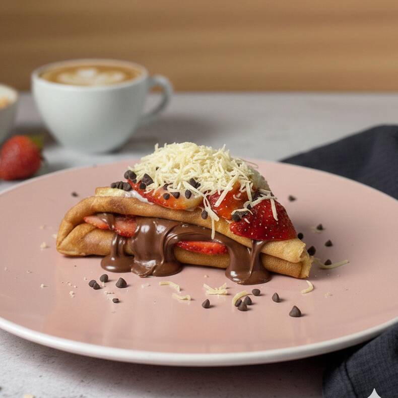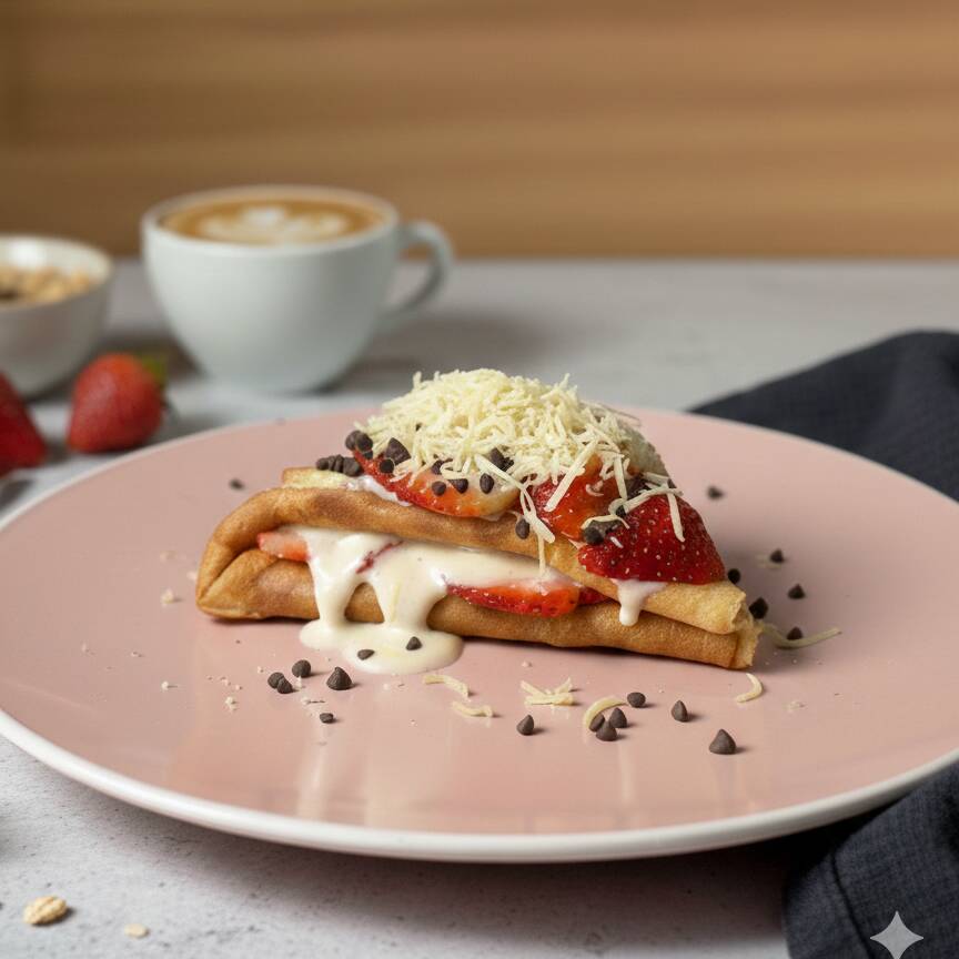 Deliciosa crepa elaborada con Nutella, Fresas Naturales y Queso de bola estilo marquesita