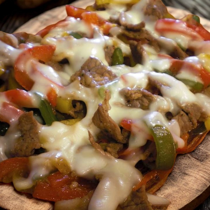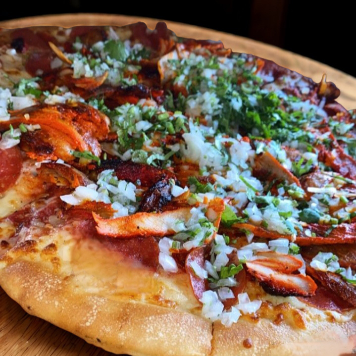 Nuestra exquisita combinacion estrella de carnes que incluyen bistec de res, Pastor, Tocino, Pollo, Cebolla y Pimiento Morron, acompañados con una deliciosa capa de queso fundido.