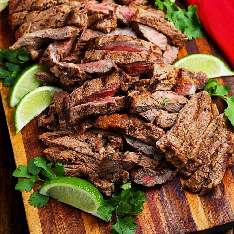 Delicioso bistec de res aderezado y asado a la plancha. (porción de 4 tacos aprox.)