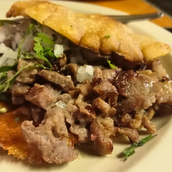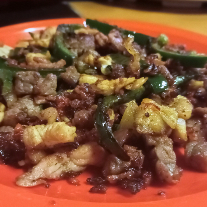 Deliciosa carne al pastor directa del trompo, asada a la plancha y combinado con pimiento morrón y cebolla.