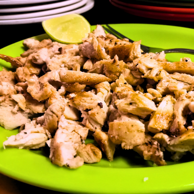 Deliciosa pechuga de pollo aderezada y asada a la plancha. (porción de 4 tacos aprox.)