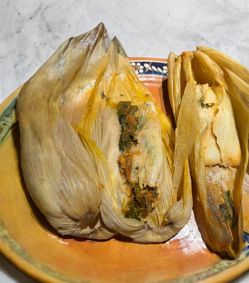 Tamal de maíz con rajas y queso