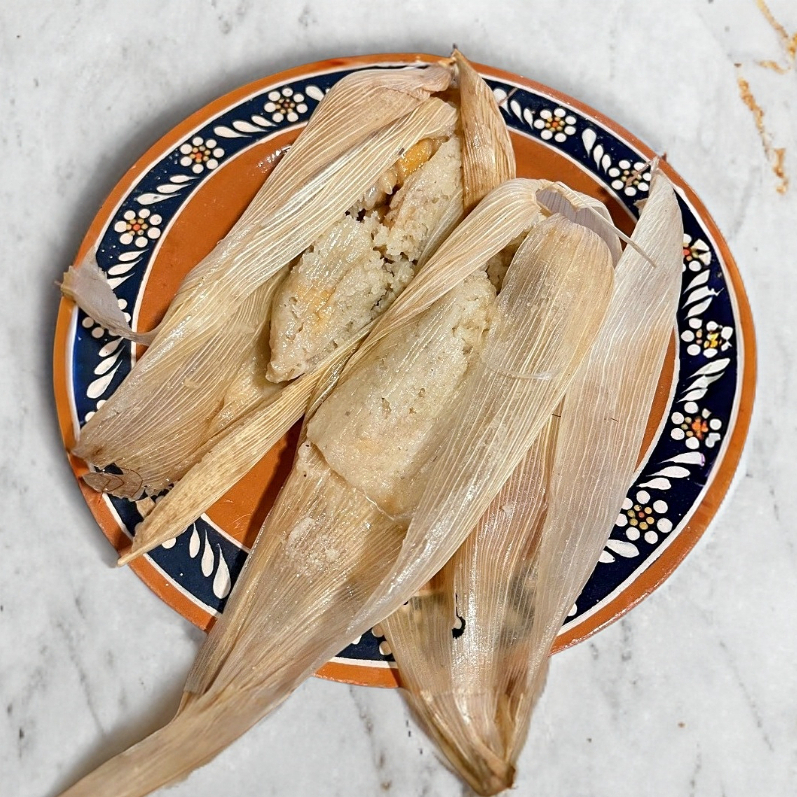 Tamal de maíz de Chile verde (pollo)