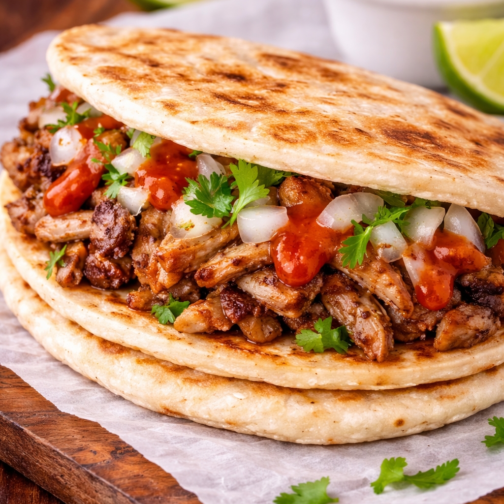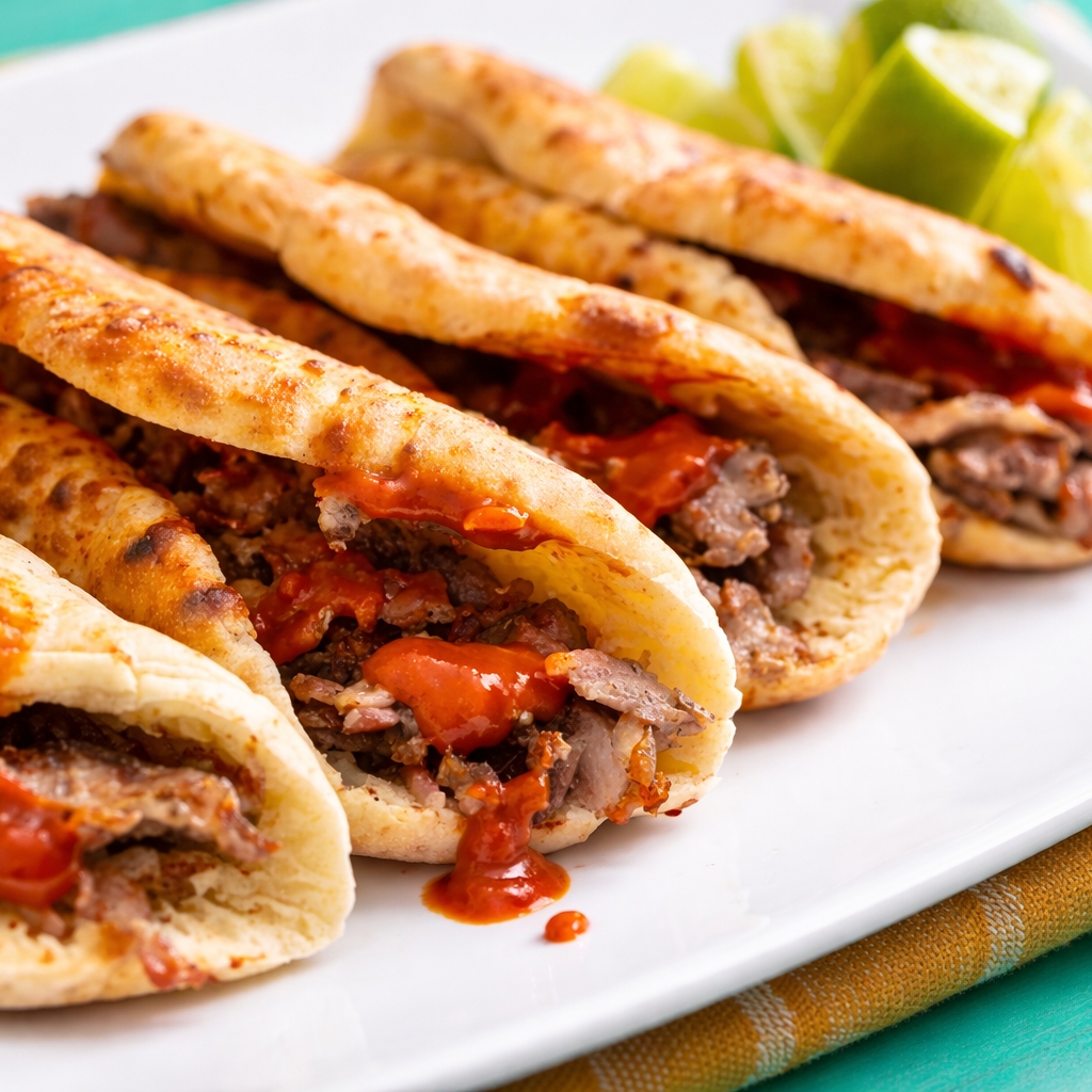 Carne marinada estilo árabe en pan pita