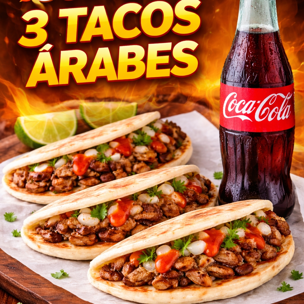3 tacos arabes + 1 refresco