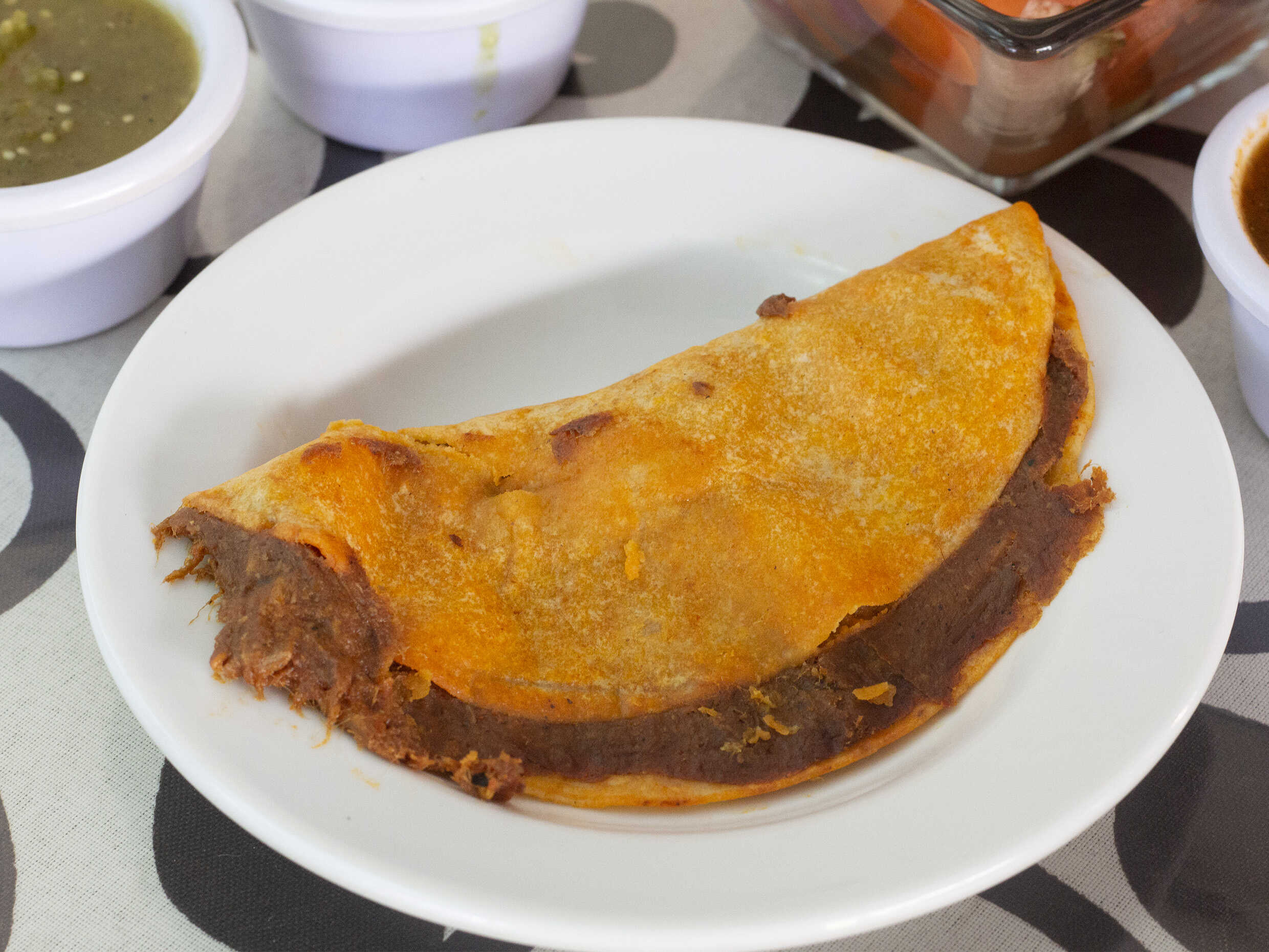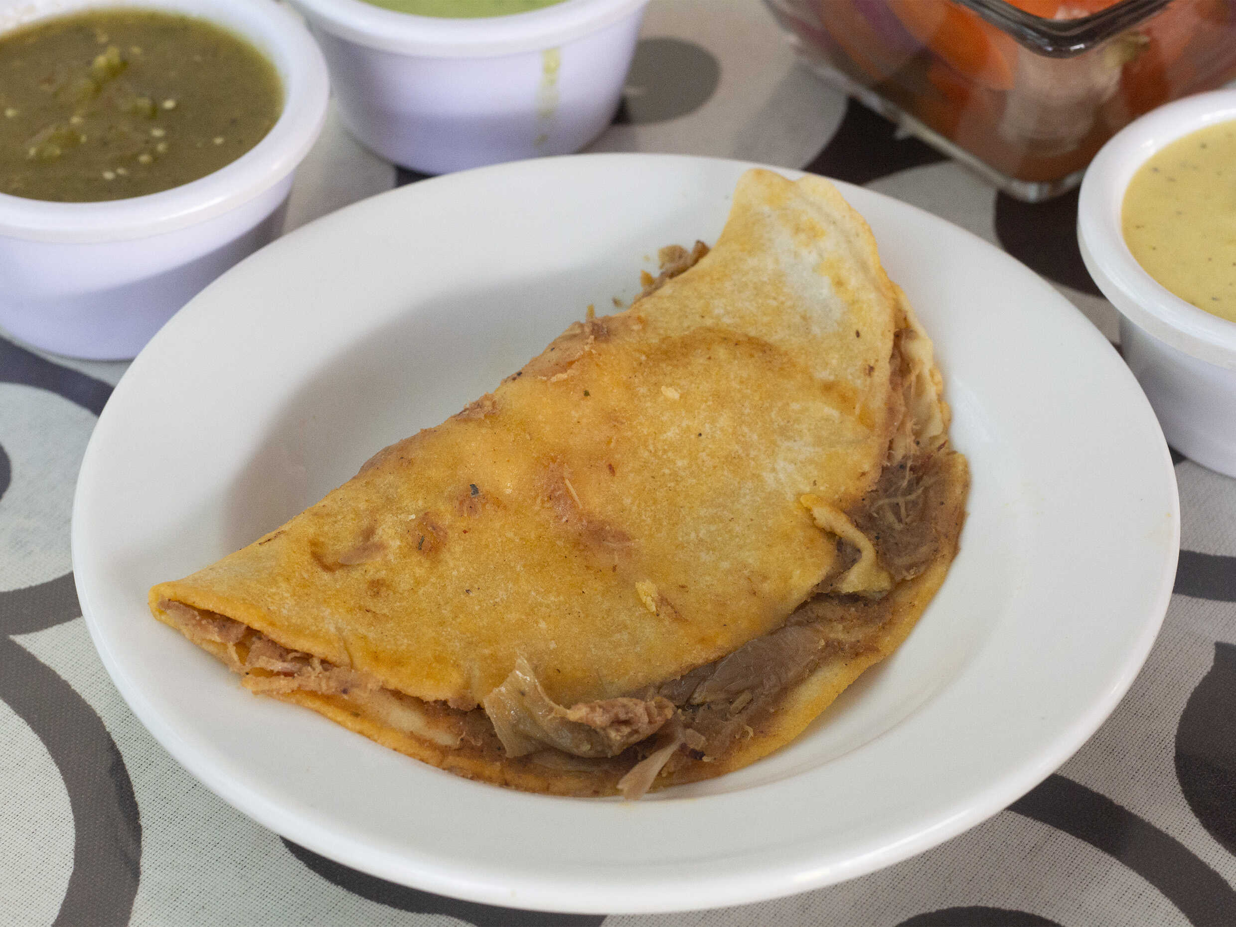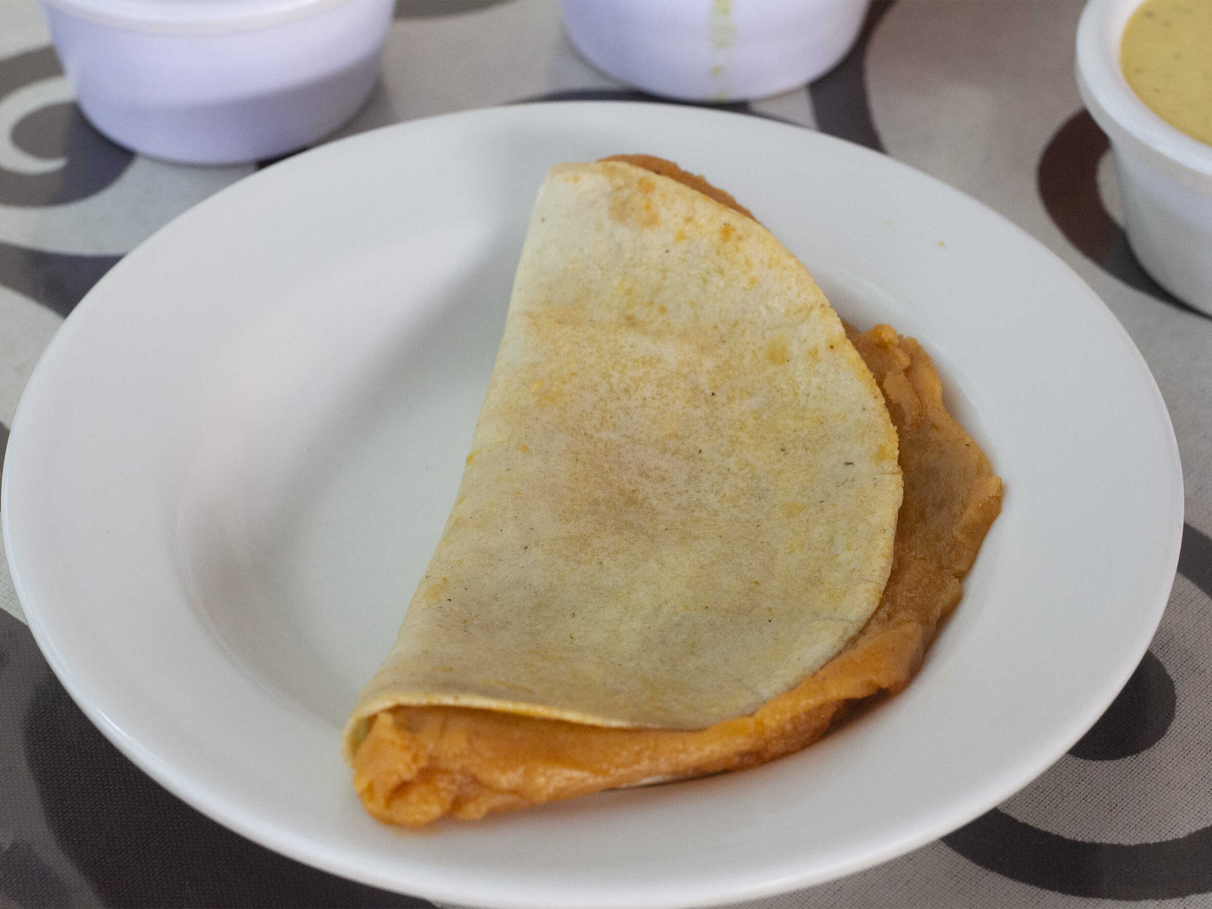 Taco de canasta con carne de res deshebrada en salsa verde.