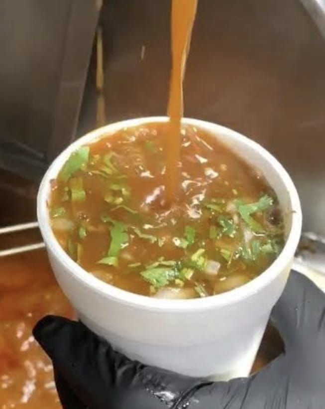 Vaso de 12 oz de consomé de birria.