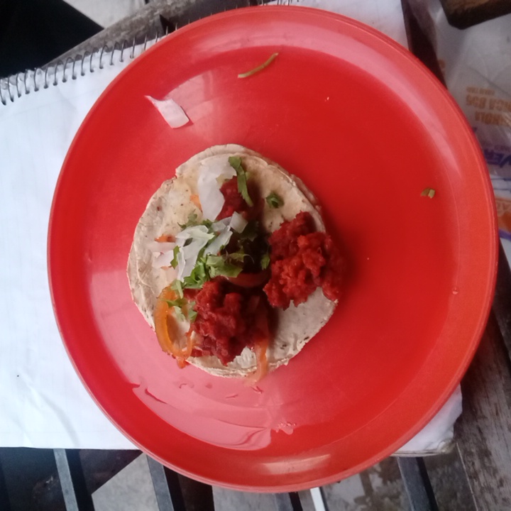 Plato de 4 tacos mixtos cada uno con doble tortilla su porción de carne y su verdura