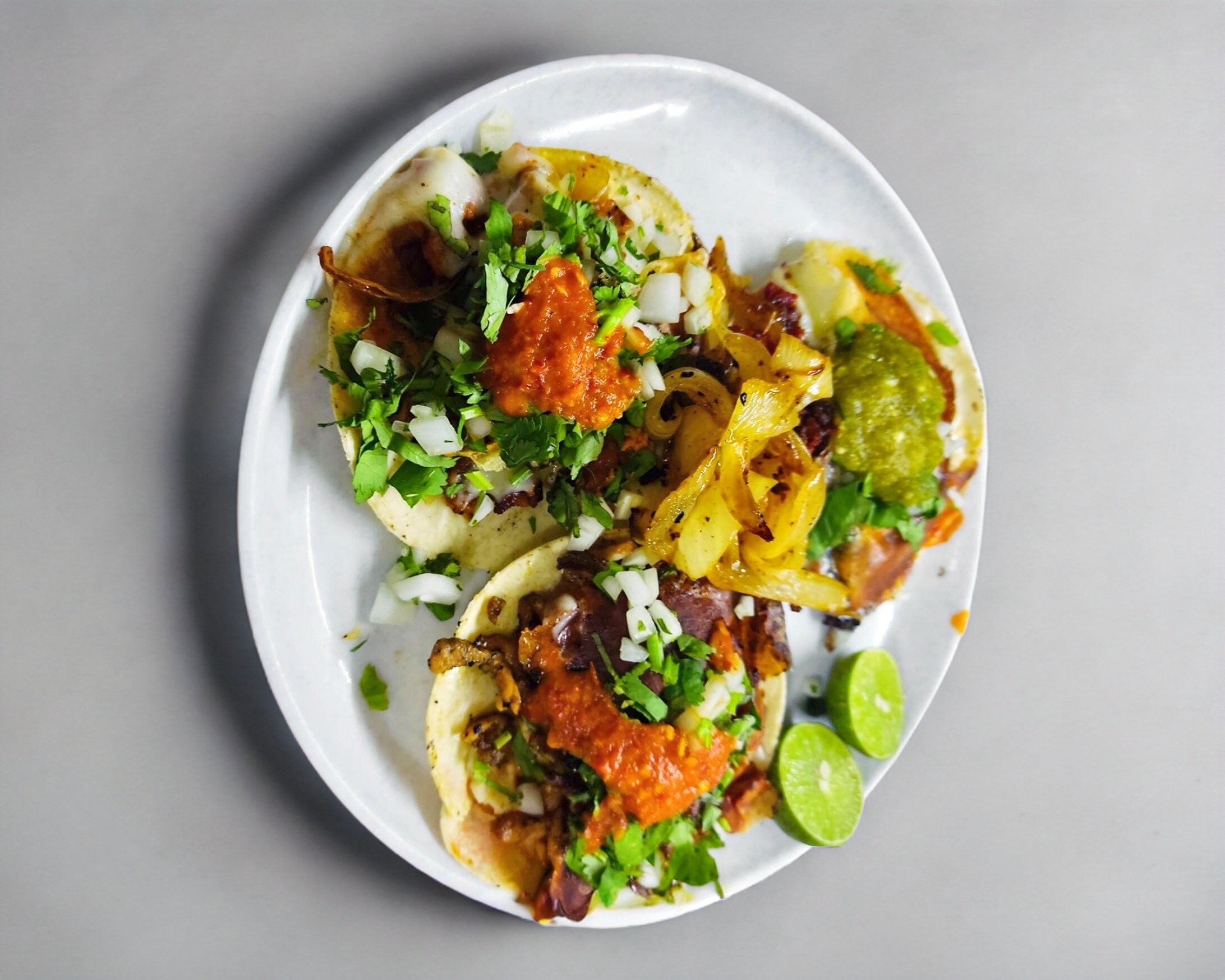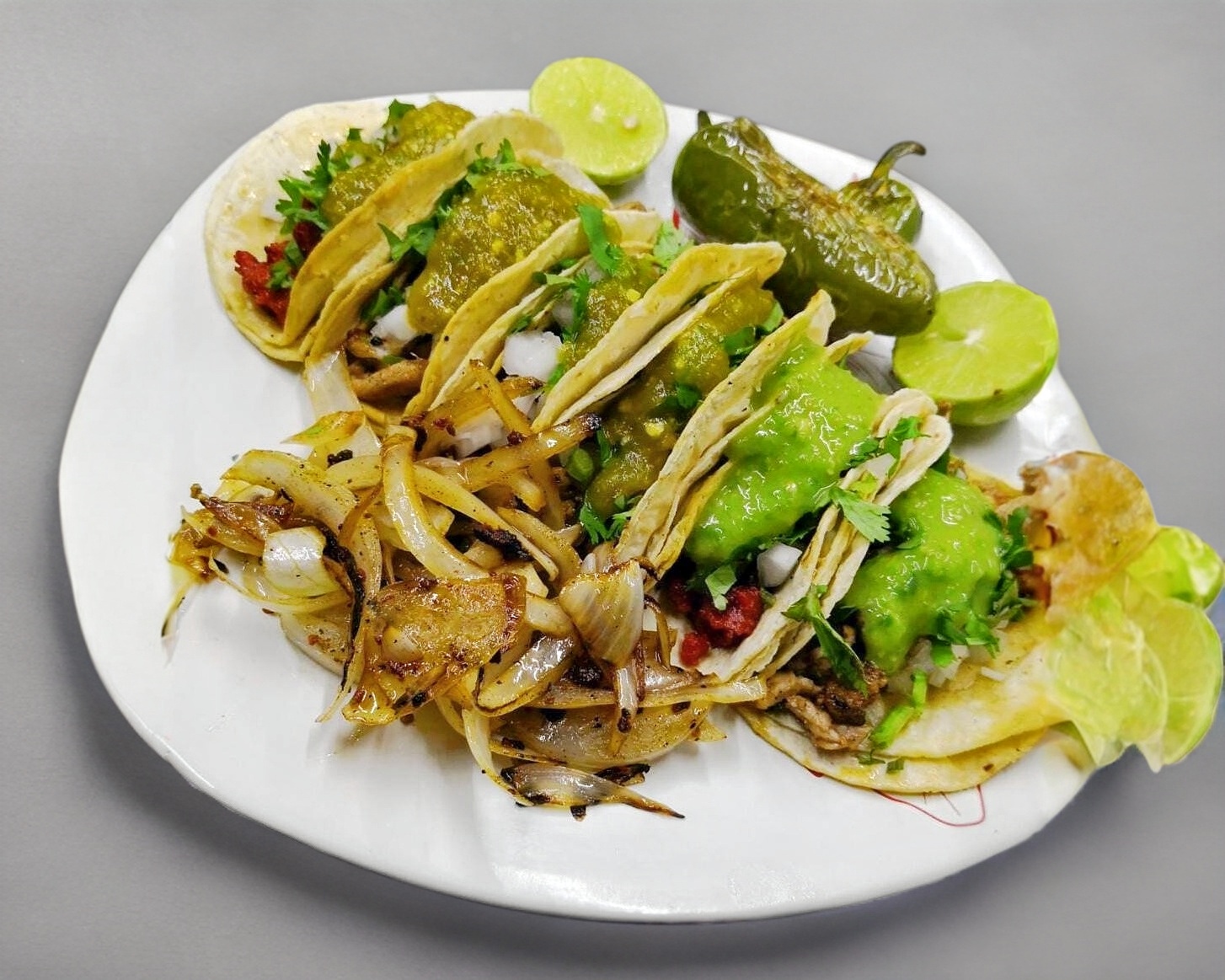 La Carne de tu Preferencia, 2 Tortillas de harina, Queso, Cebolla, Cilantro, Salsa.