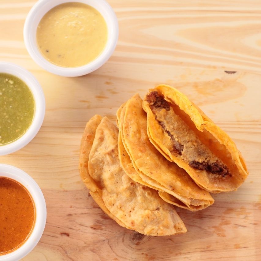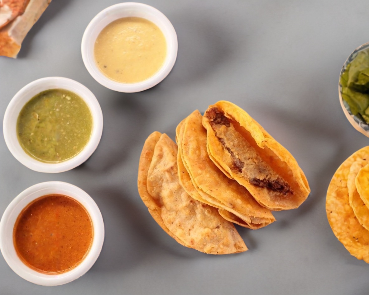 1 Taco personal dorado, carne de res y salsas