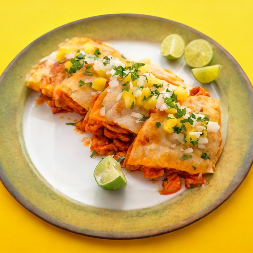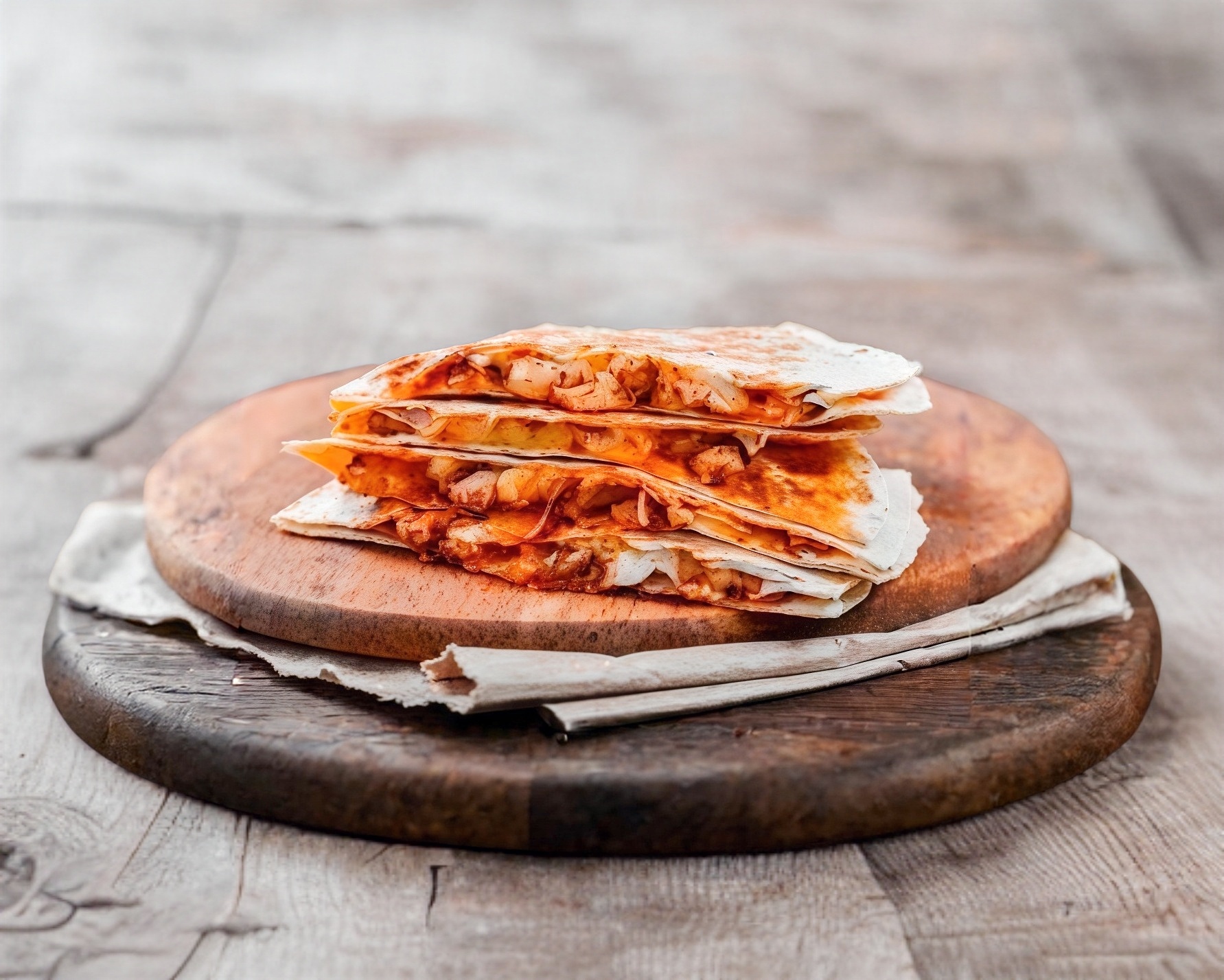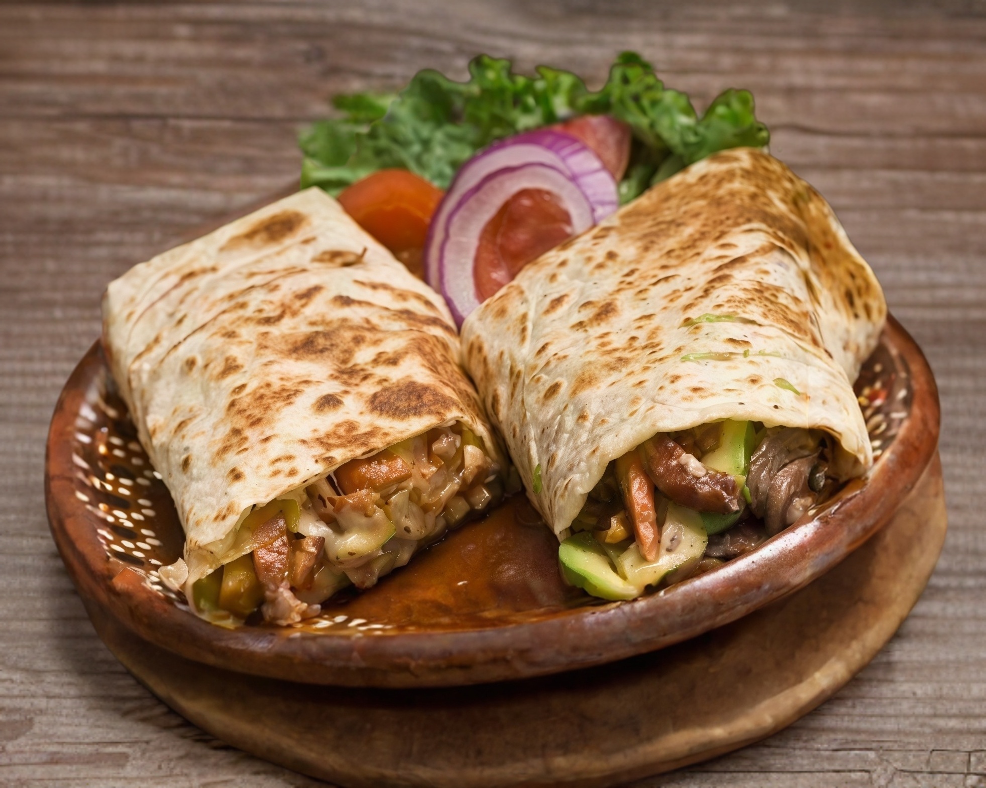 Tortilla grande de harina con carne al pastor y queso extendido 30cm.