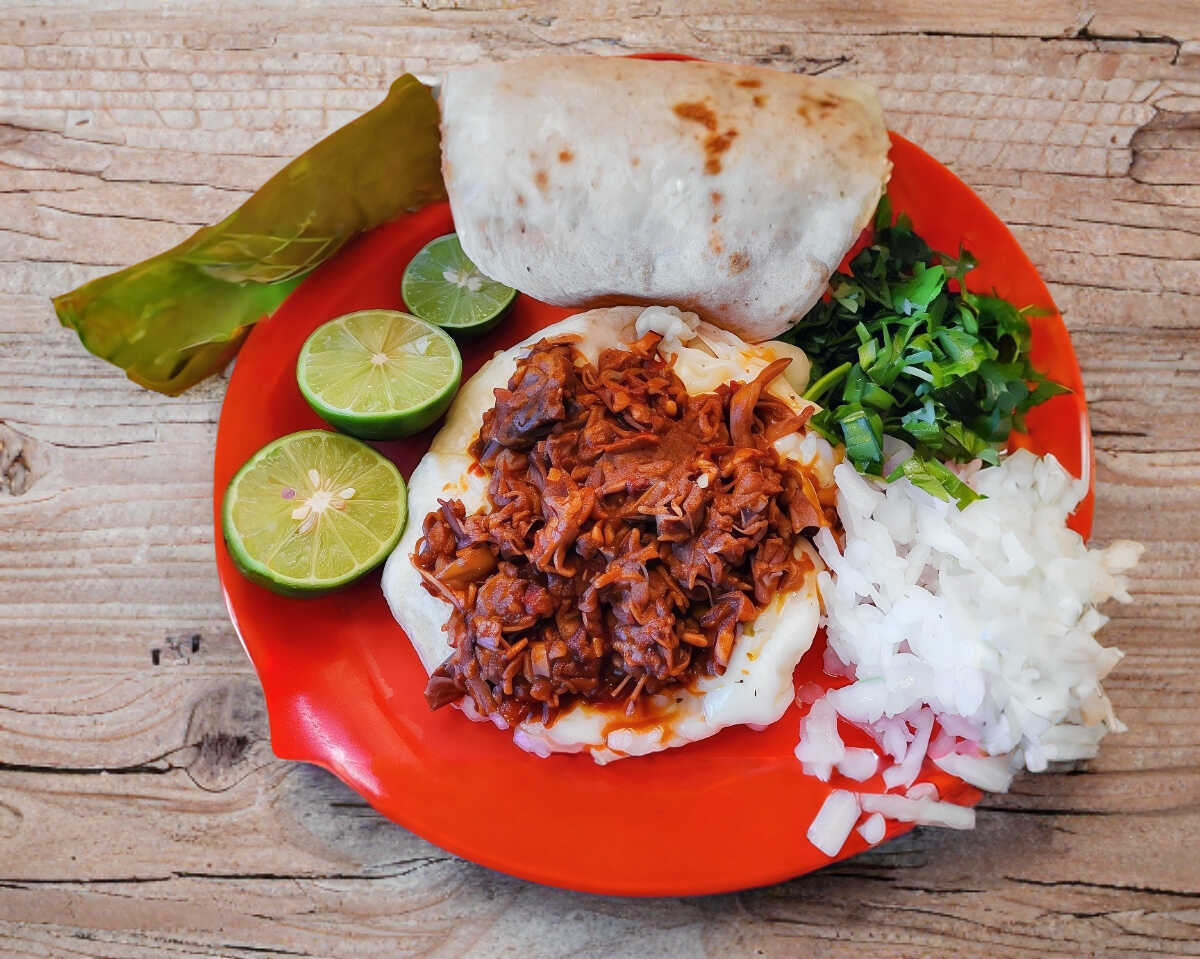 Queso oaxaca con exquisita barbacoa.