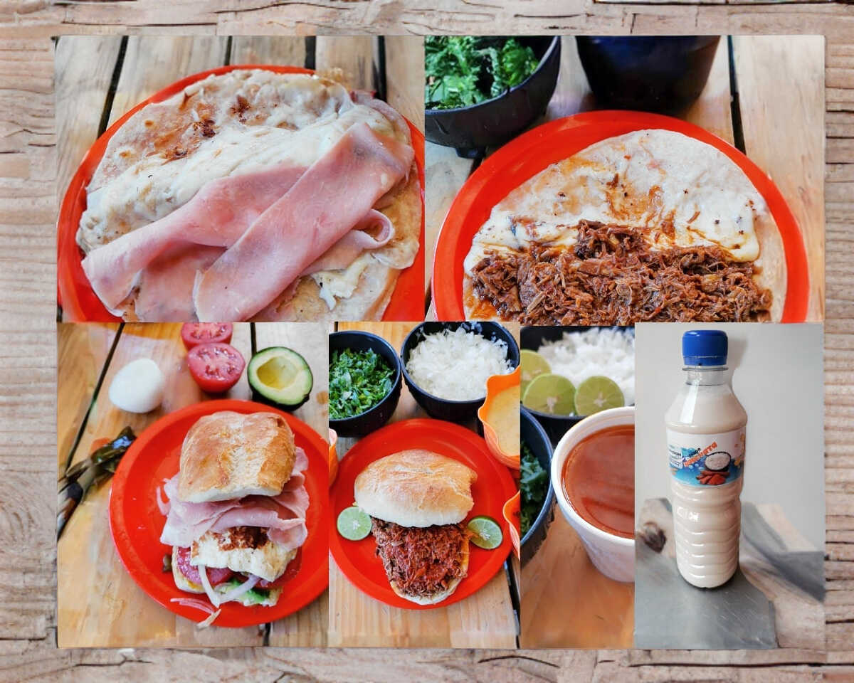1 Quesadilla de barbacoa ó Q. De Jamon + 1 Torta de Barbacoa ó Torta de Jamon con queso + 1 Agua de sabor + Consomé