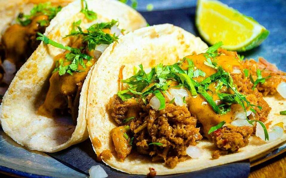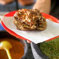 Costilla de res y de cerdo, pico de gallo, tortilla de maíz, salsa roja de tomate, queso mozzarella.