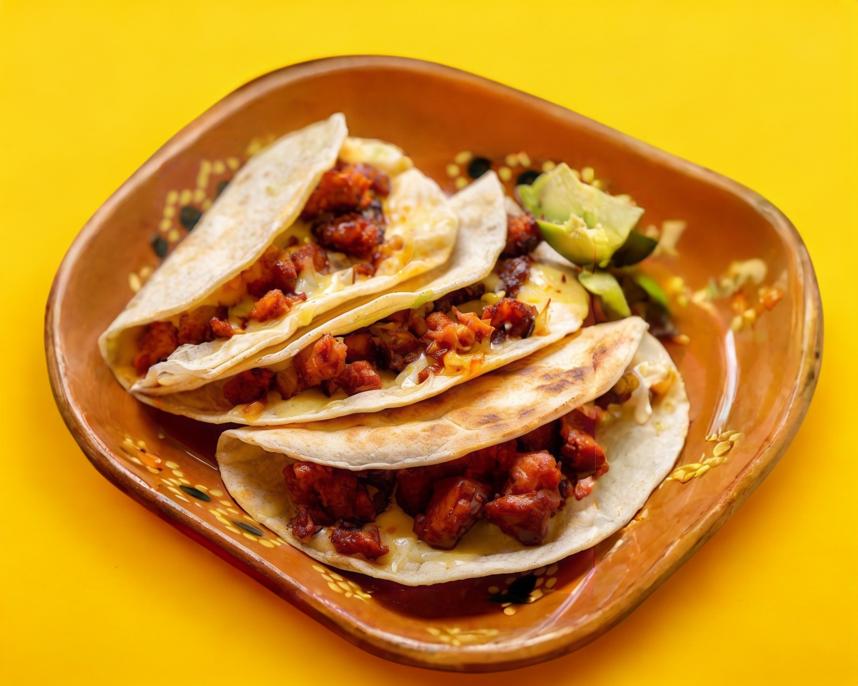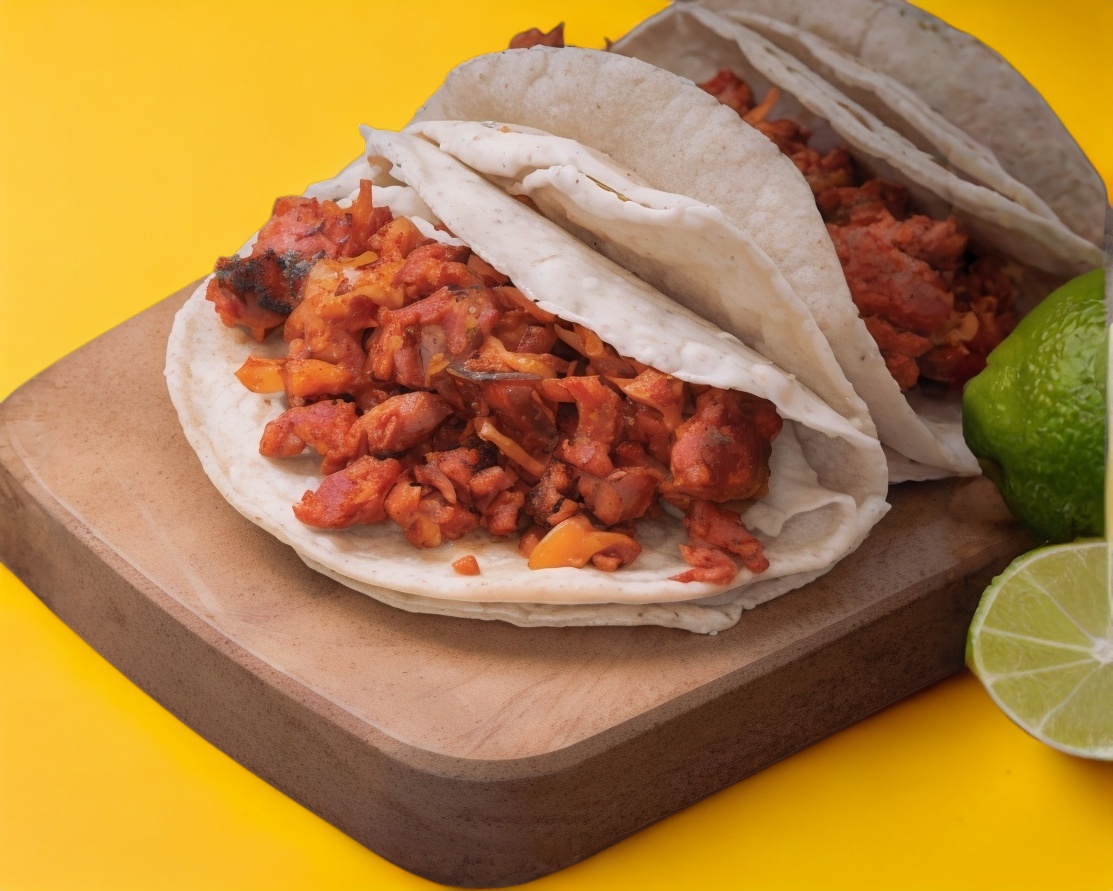Quesadilla de maíz con adobada y queso (1 pieza).