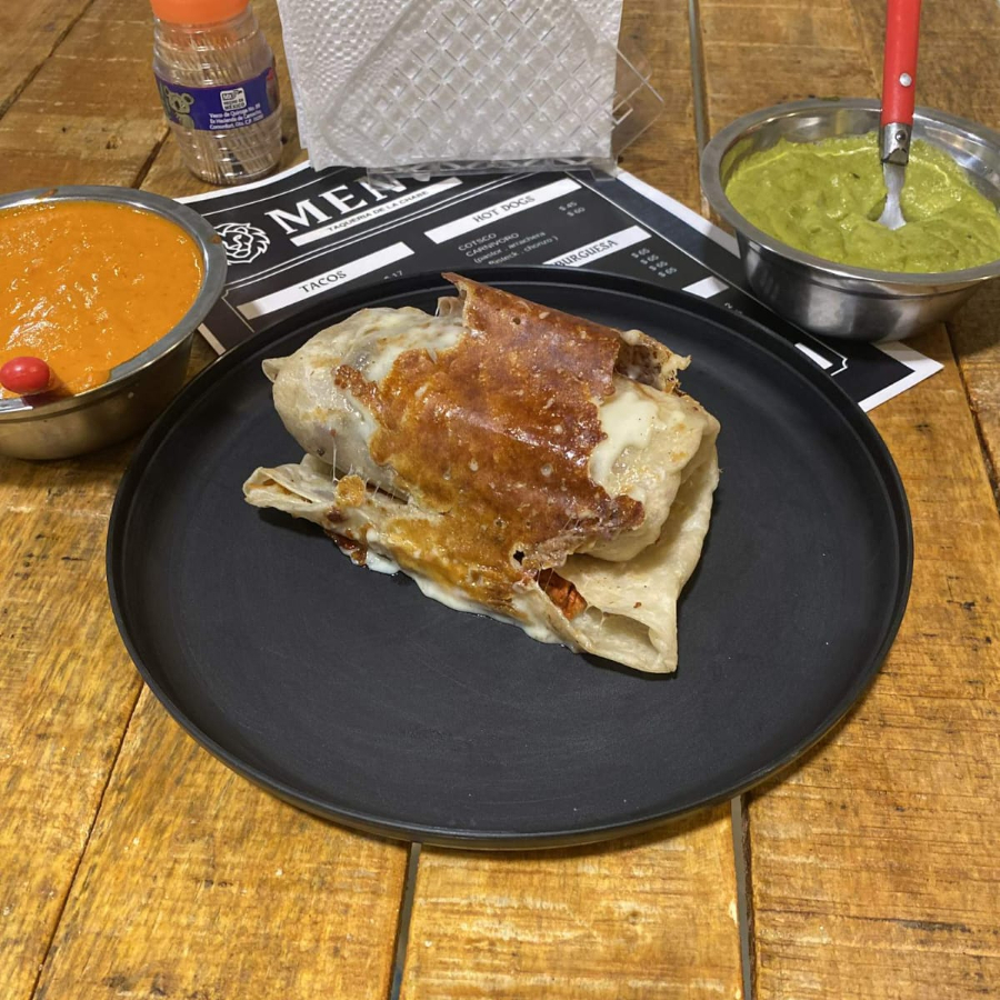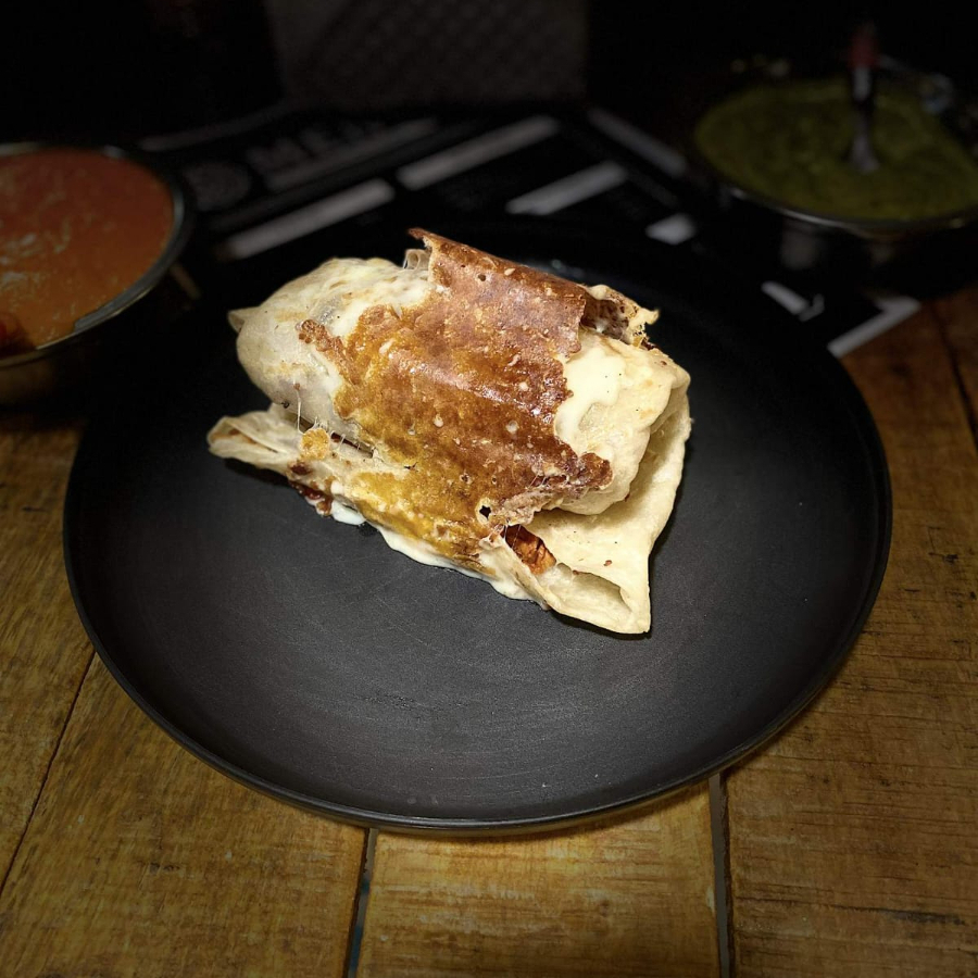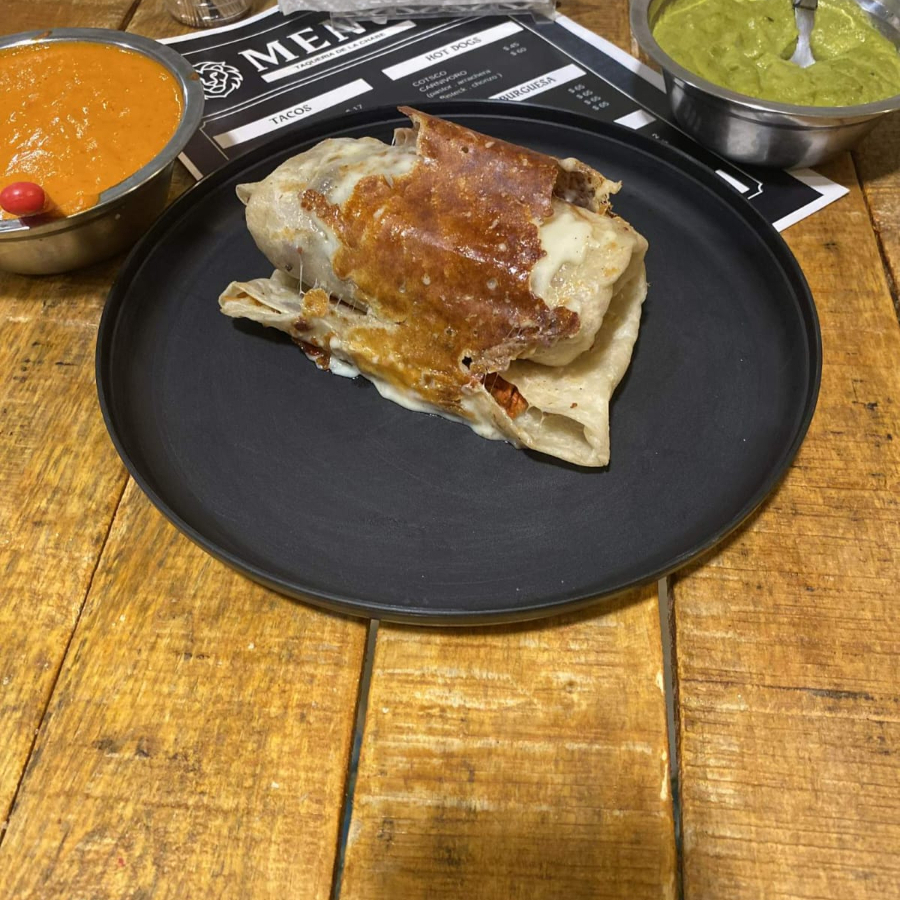 chorizo , queso asadero , cebolla asada , tortilla de harina