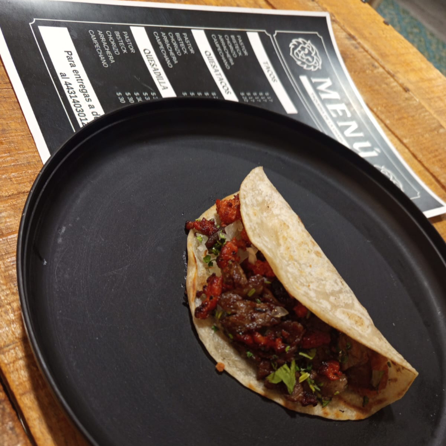 arrachera , queso asadero , cebolla asada , tortilla de harina