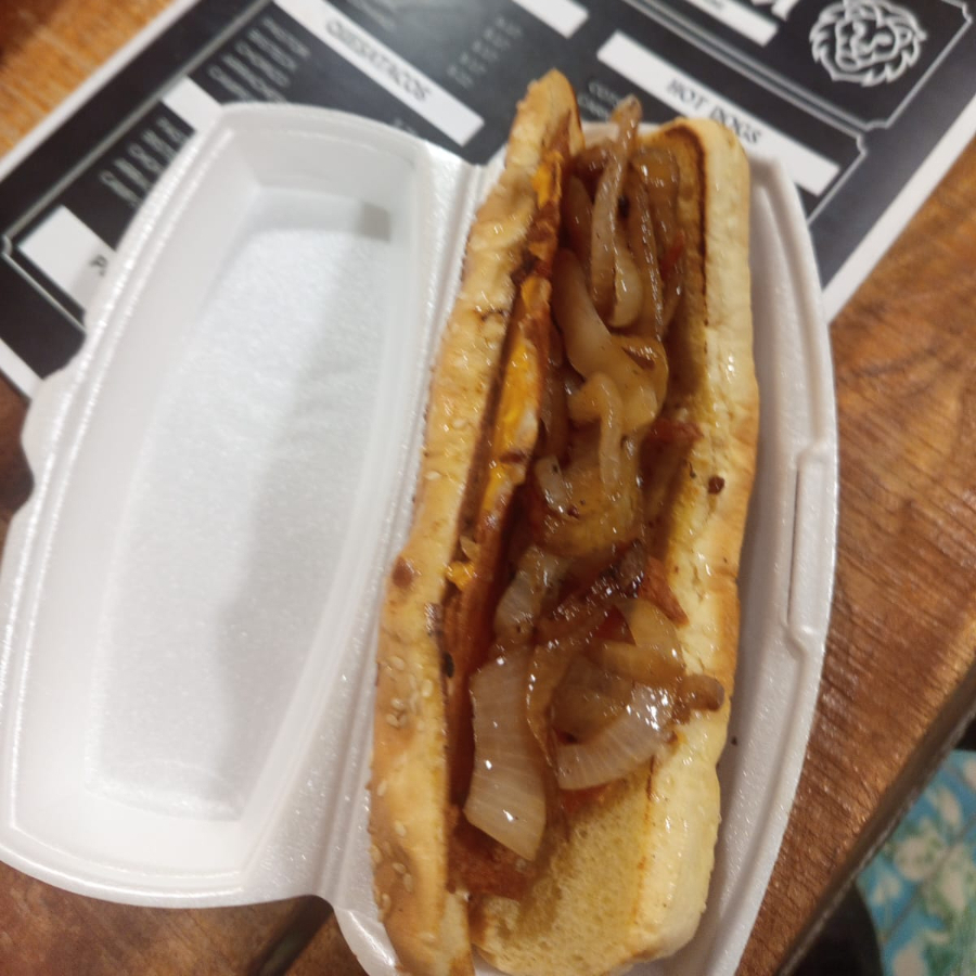 salchicha de res , bisteck , queso amarillo , queso asadero , mayonesa , capsut , mostaza , cebolla asada , pan