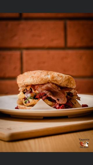 Pan Hamburguesero, con doble tostada , doble carne al pastor cebolla asada, catusp, mostaza,mayonesa