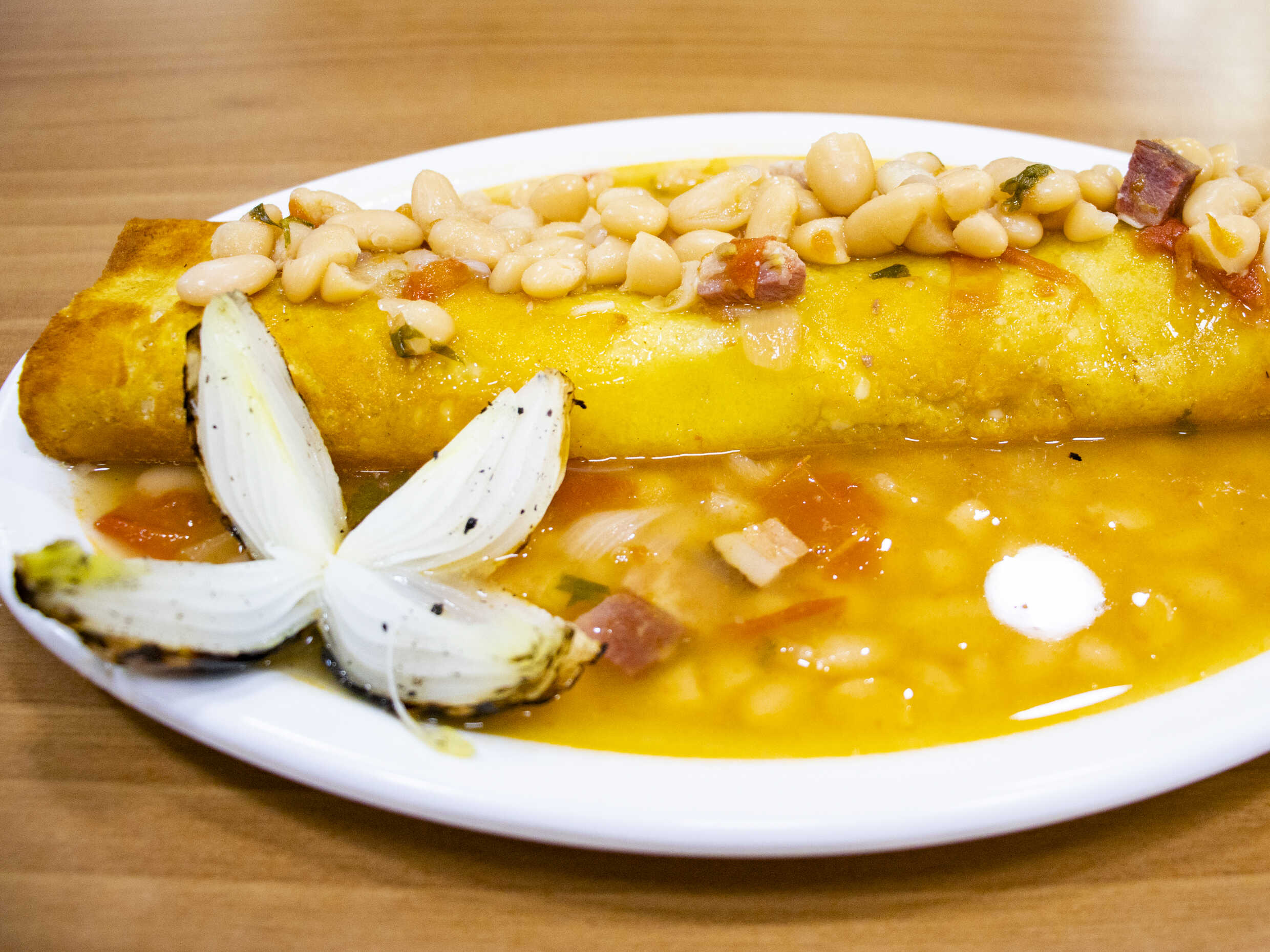 Bañados con frijoles charros.