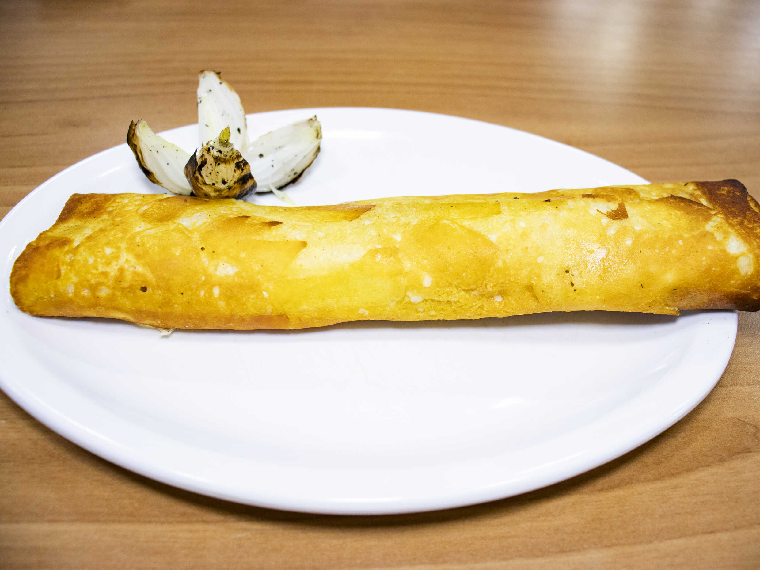 Tortilla dorada con queso y carne.