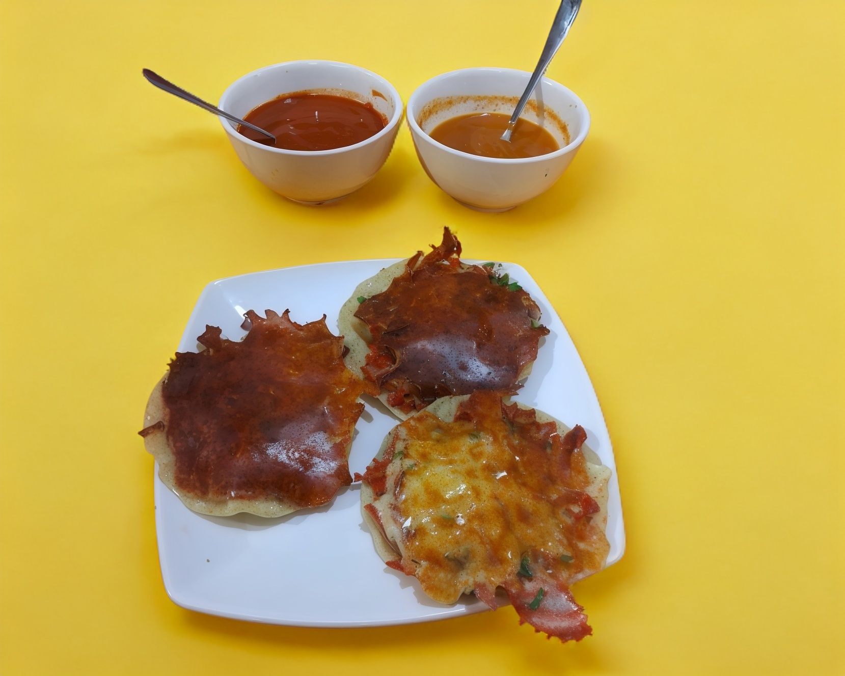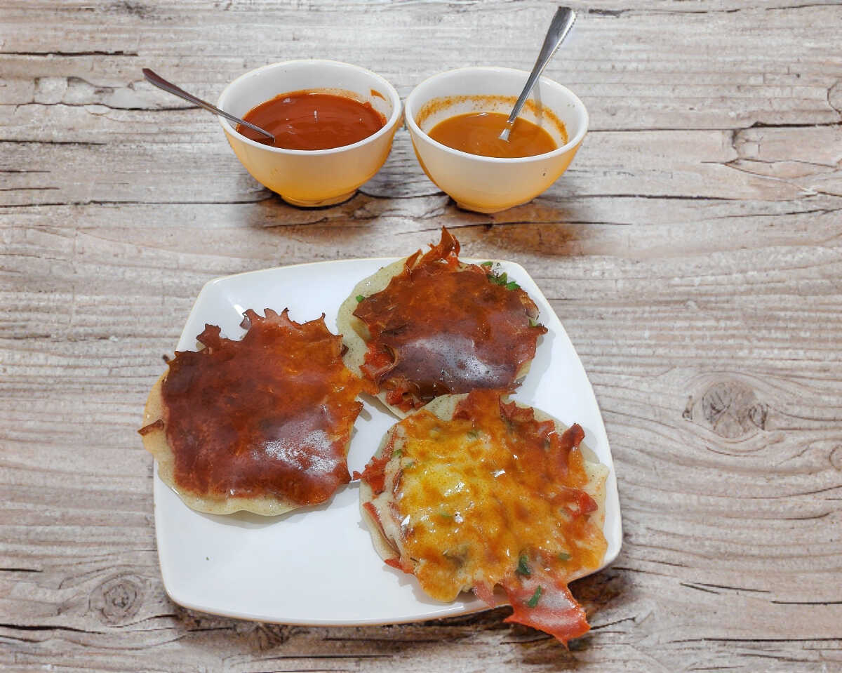 tortilla doradita con carne de su preferencia en costra de queso fundido