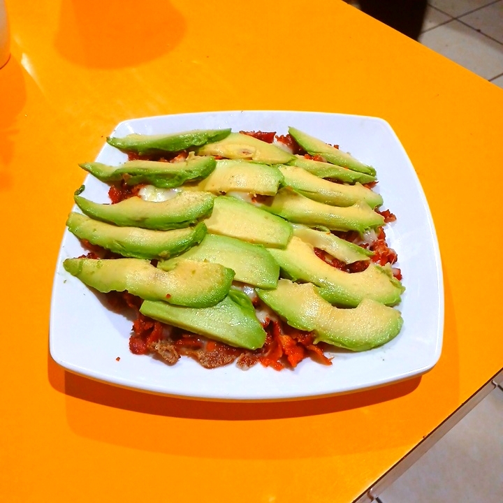 Morrón, cebolla, tocino, chorizo y queso. Los platillos van acompañados con tortillas, y salsas.