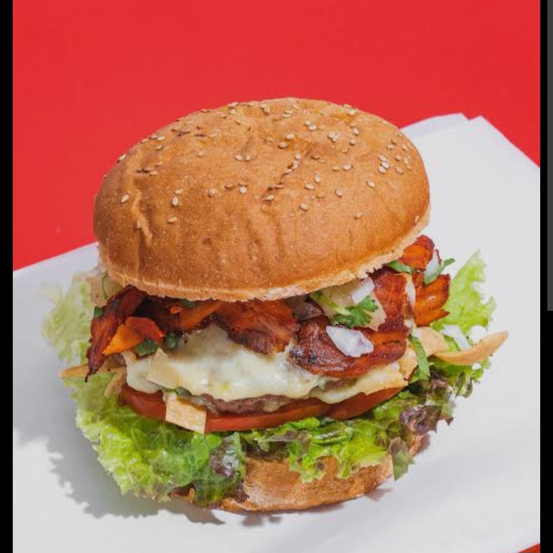 Carne jugosa con queso amarillo y tocino, acompañada de lechuga, jitomate, mayonesa y catsup para un sabor clásico y contundente.