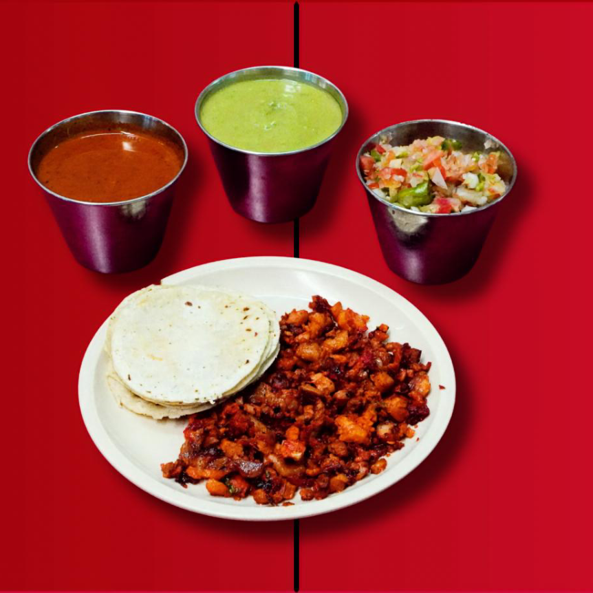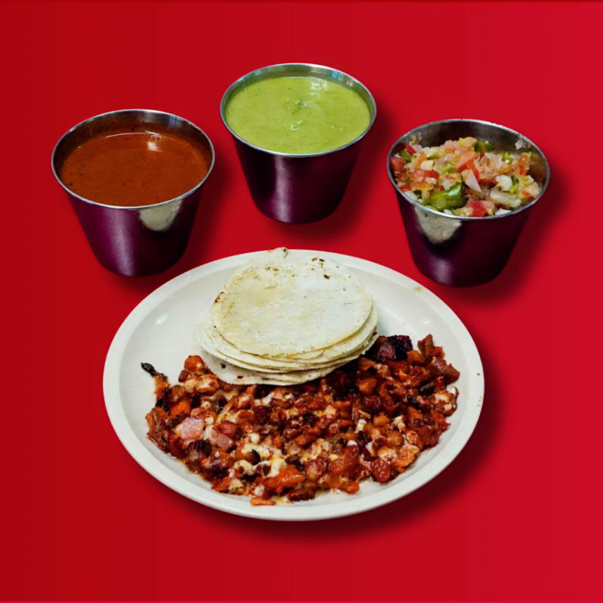 una carne, queso y una orden de tortillas