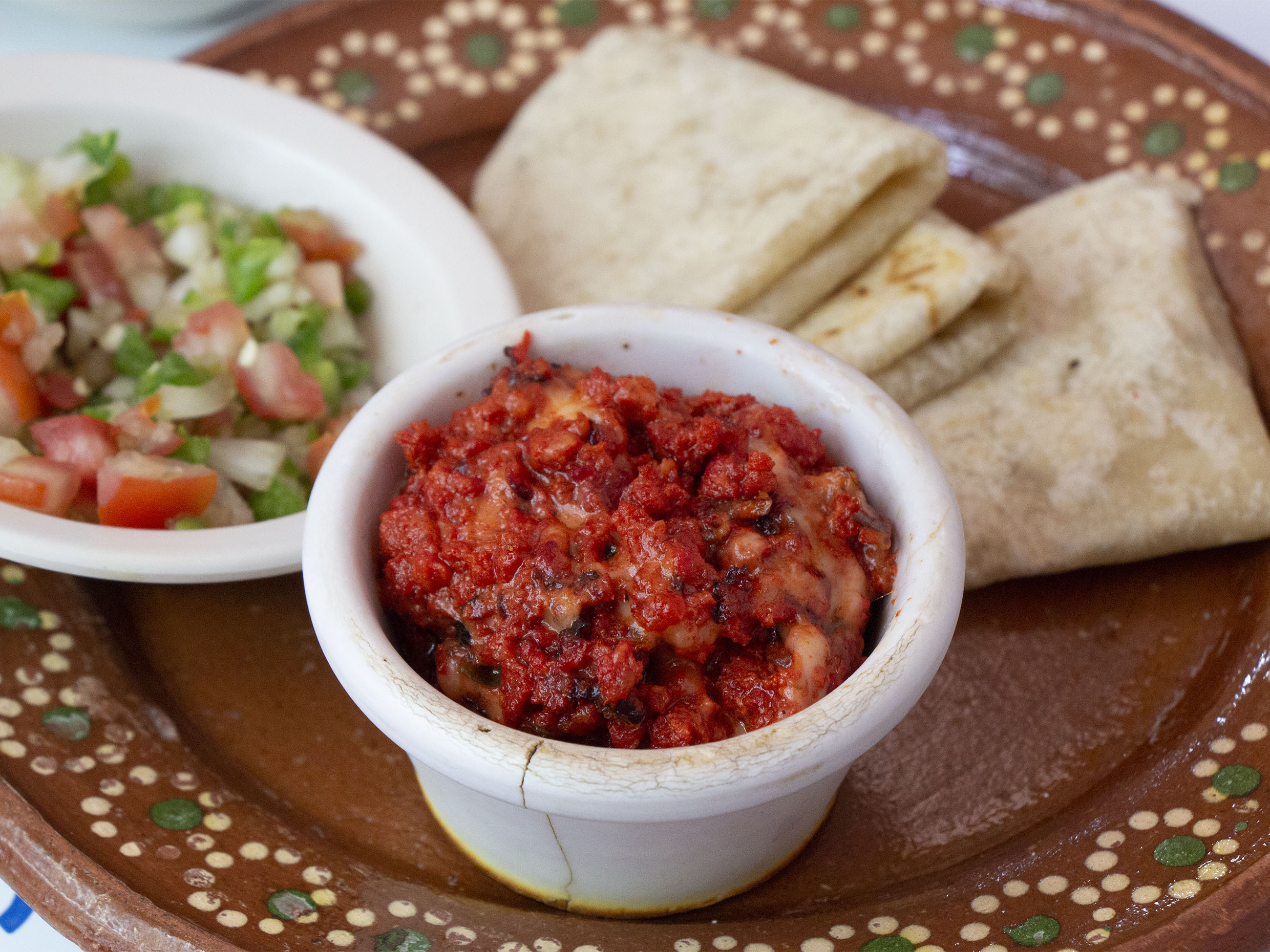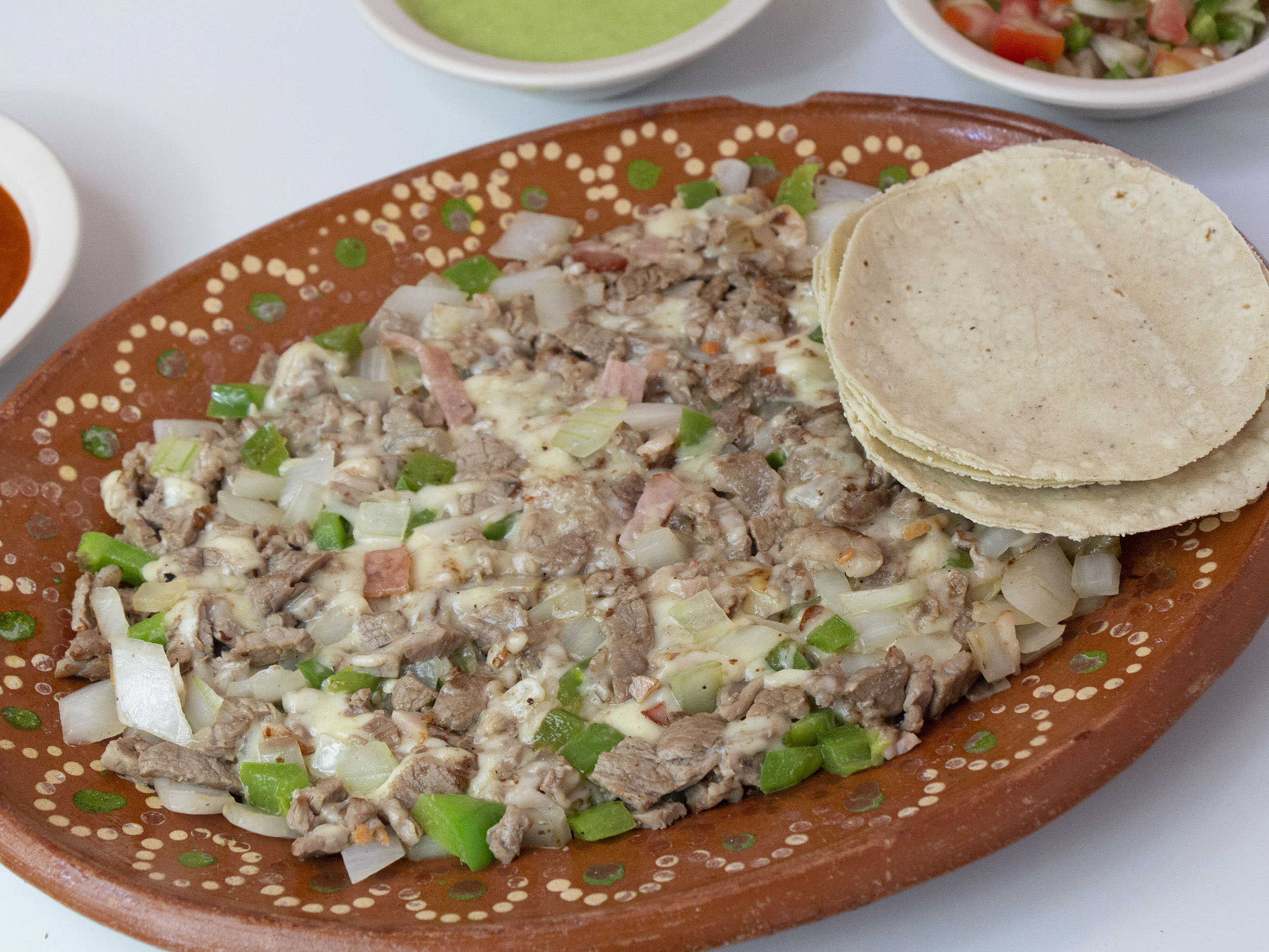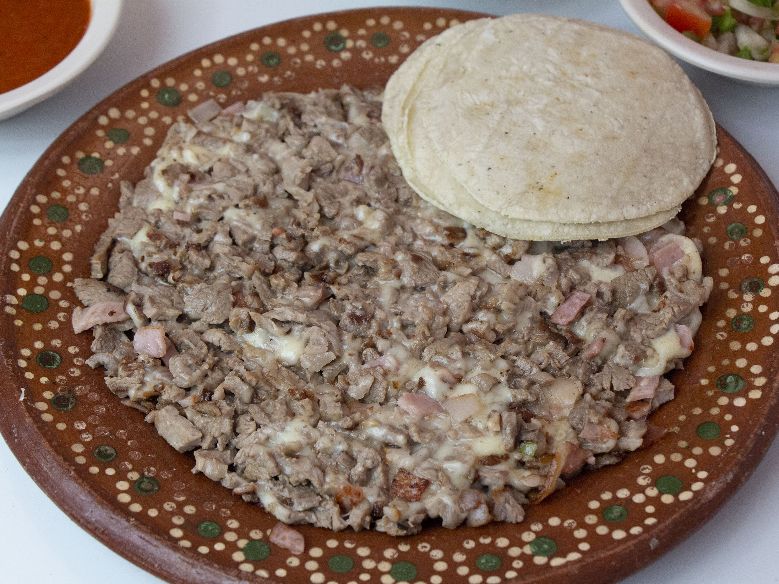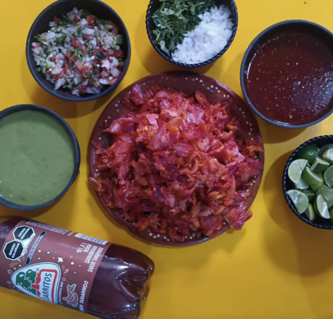 Alambre Especial 12 tortillas de maiz ,Morrón, cebolla, tocino, pastor, bistec y queso asadero, salsa verde y roja