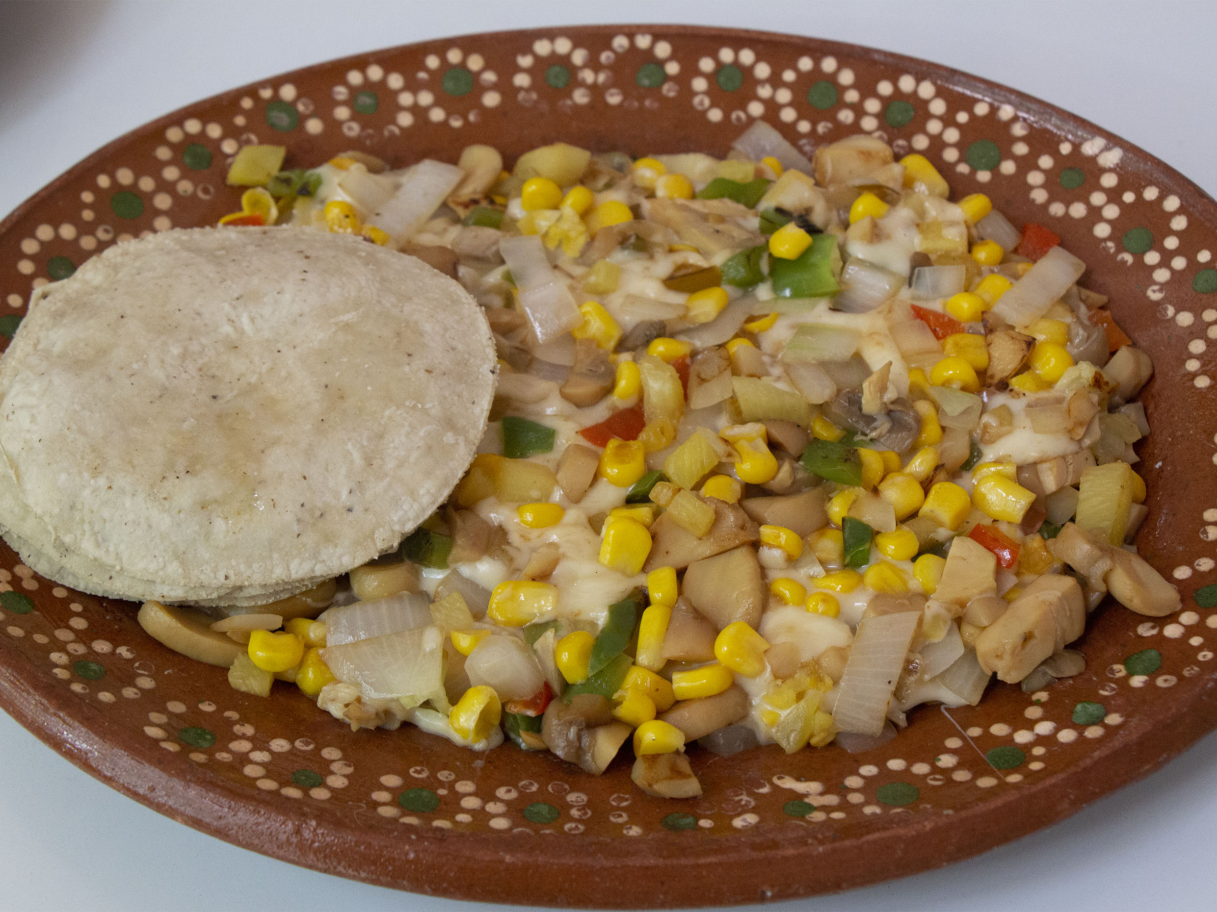 Morrón, cebolla, piña y champiñones, elote y queso.