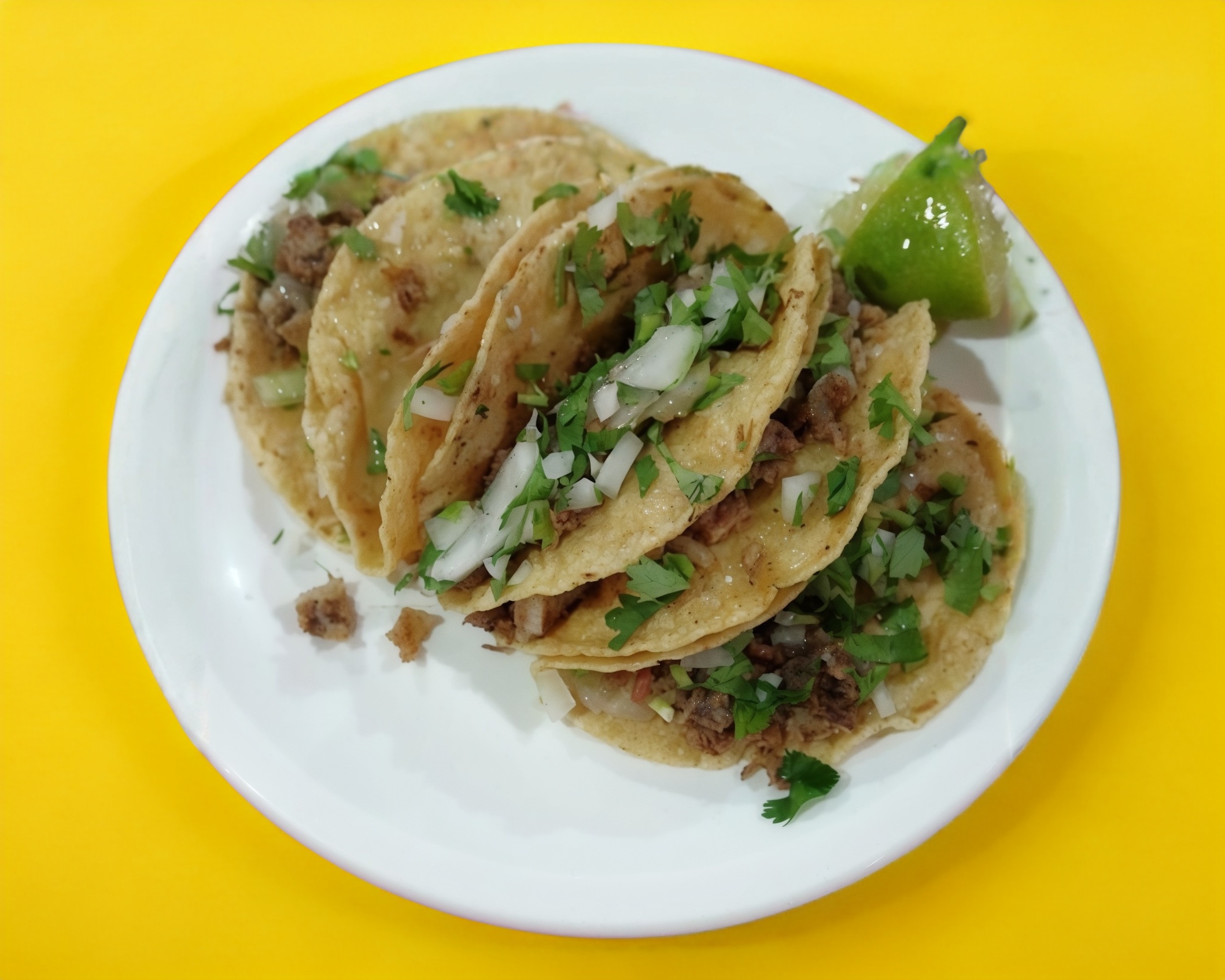 Doble tortilla taquera carne adobada acompañado de cebolla y cilantro salsa roja o verde