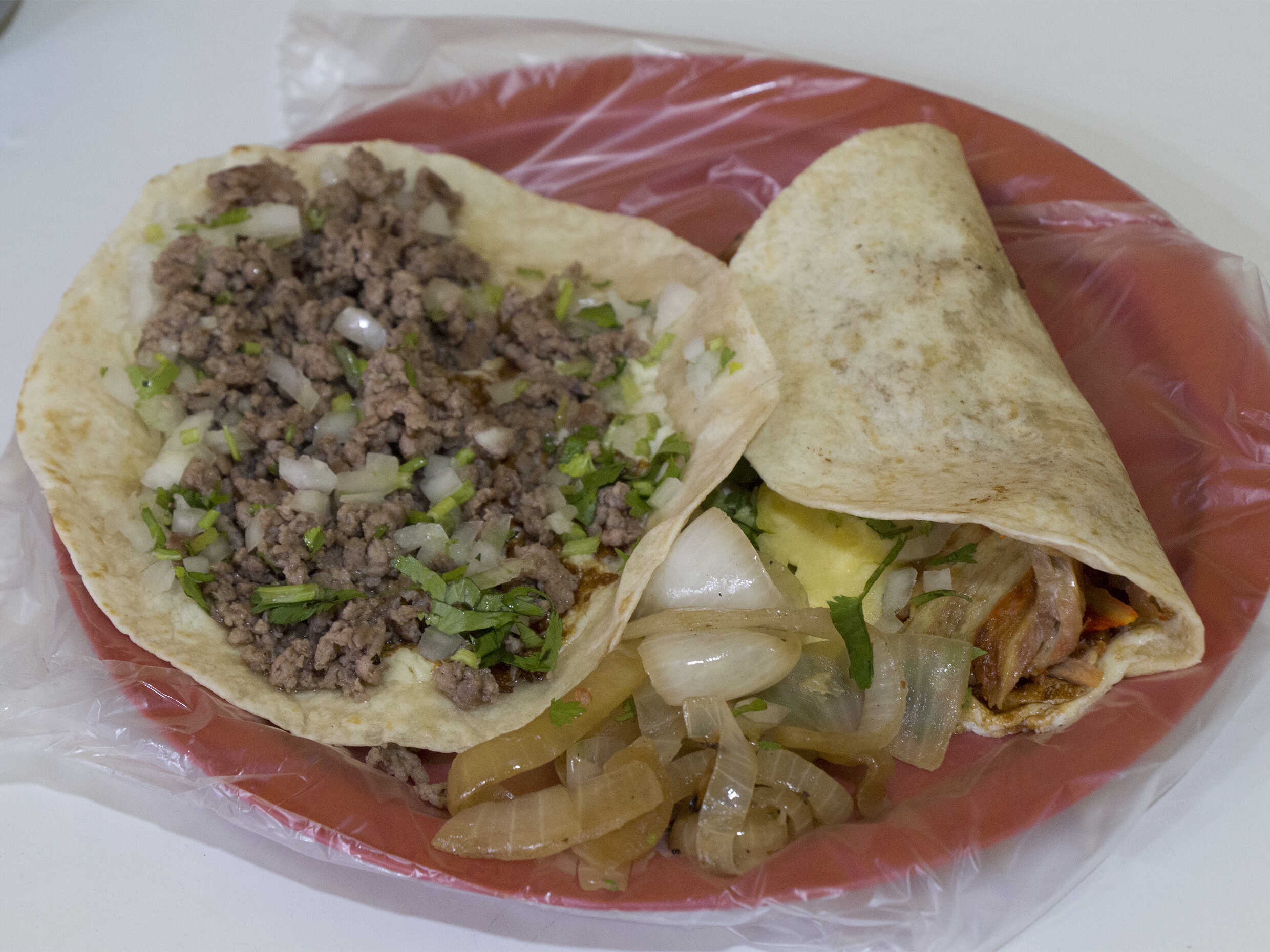 Doble Tortilla de maíz, carne y verduras