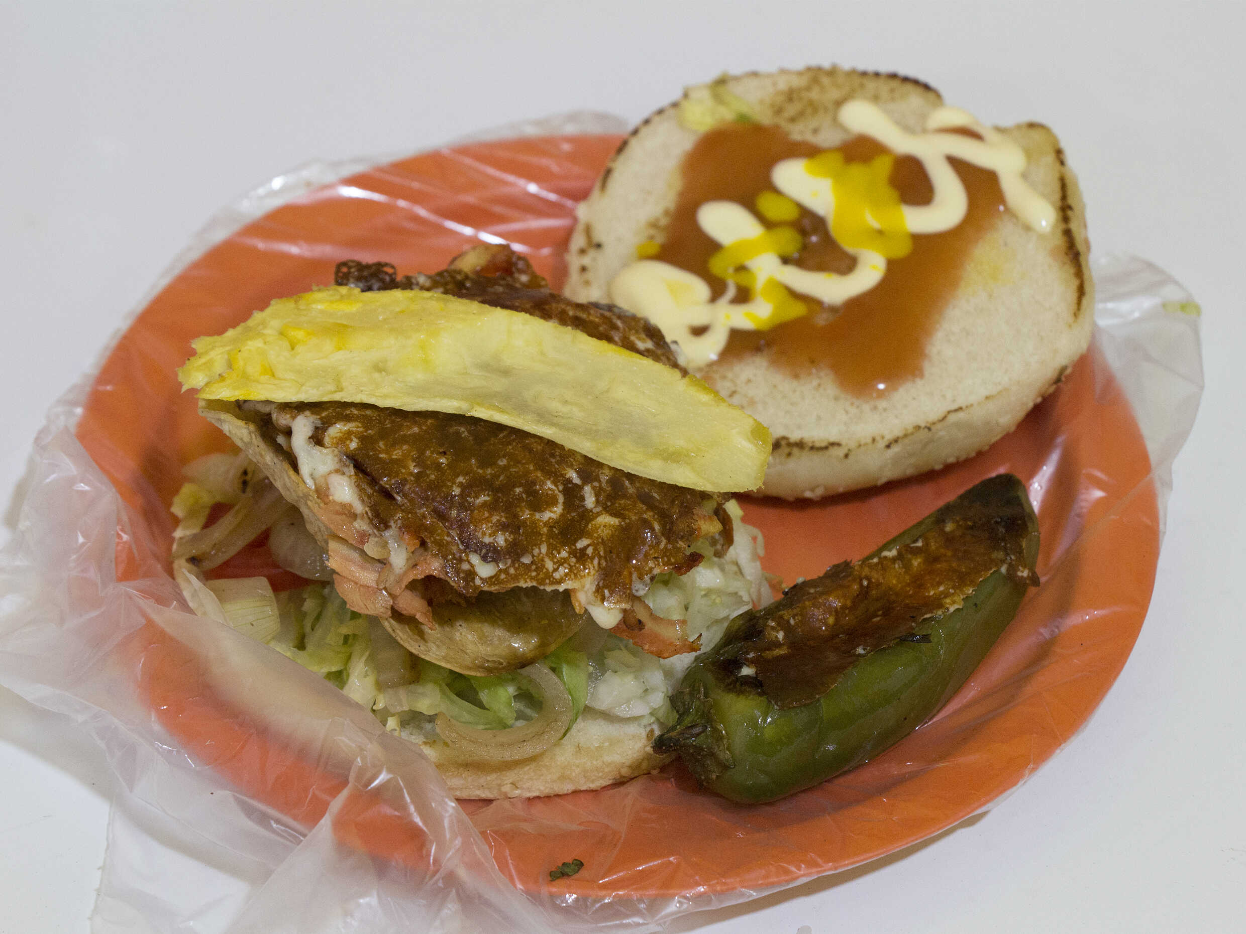 BOLILLO GRANDE, 🥩🥩🍖 CARNE AL PASTOR, QUESO Y VERDURAS.