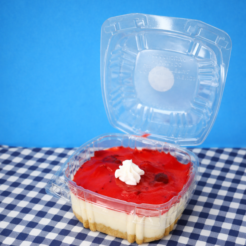 Chesscake de vainilla con base de galleta y cubierta de mermelada de fresa