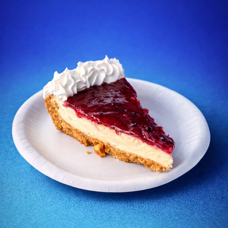 Chesscake de vainilla con base de galleta y cubierta de mermelada de zarzamora