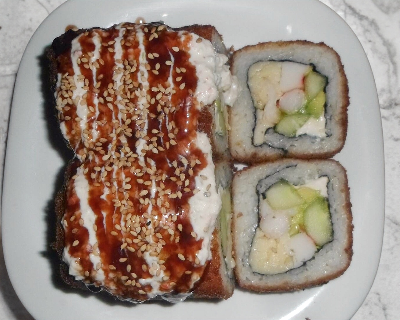 Cangrejo, aguacate, pepino, Philadelphia.