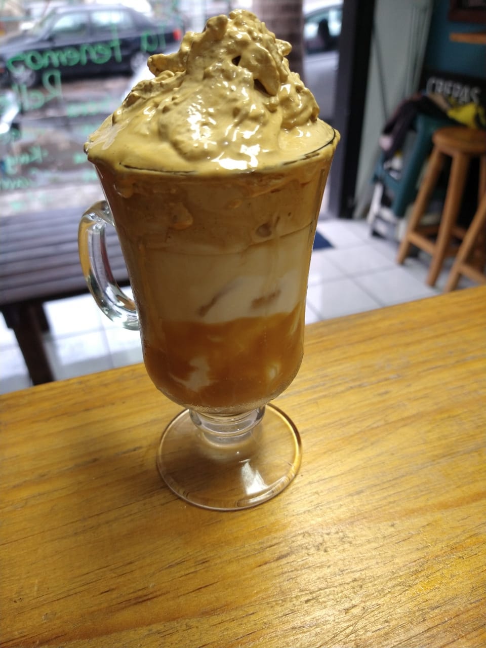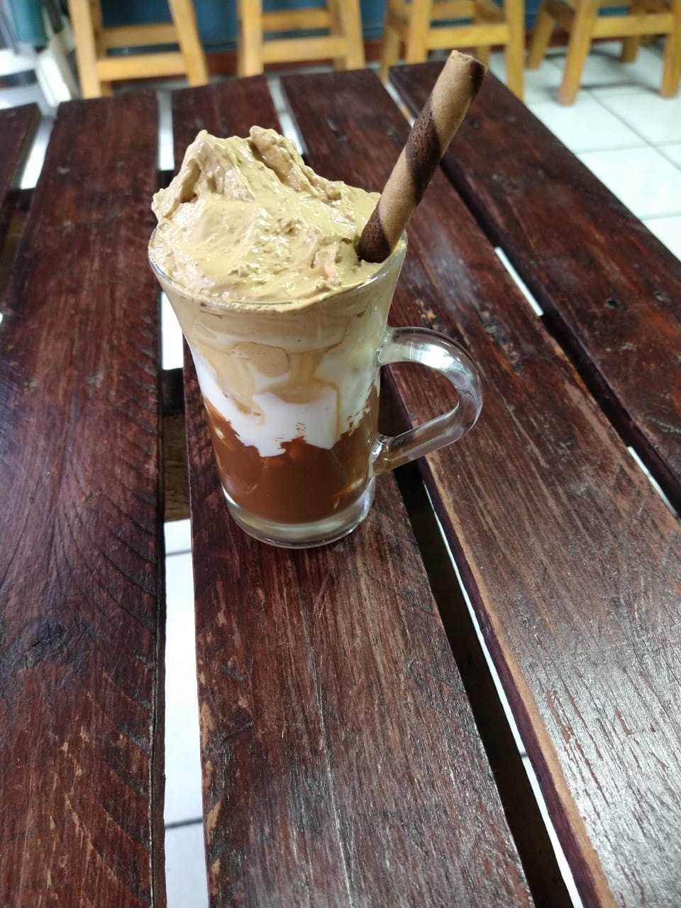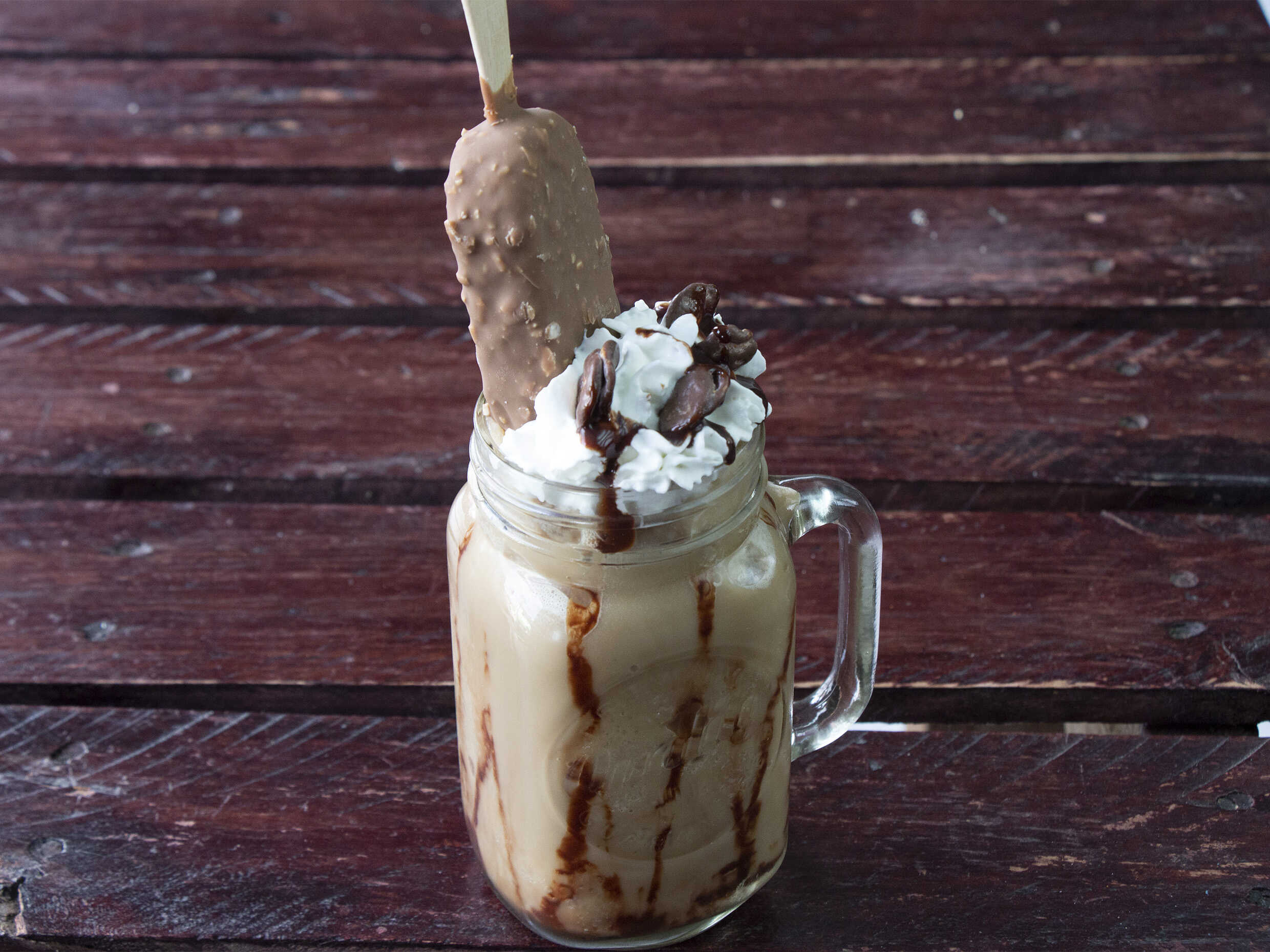 Base de cafe, crema batida, paleta magnum, krankys, chocolate liquido, galleta.