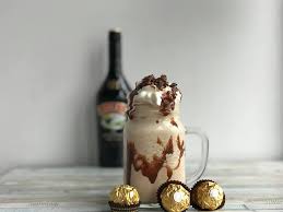 Base de cafe, crema de nutella, crema batida, mordisko, kínder delice, cereza, chocolate liquido.