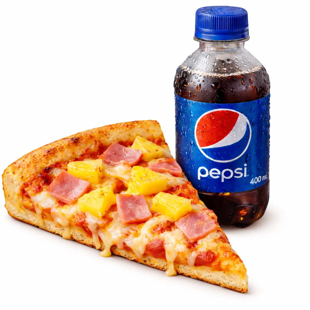 Rebanada Pizza Hawaiana Grande + Refresco 400 ML