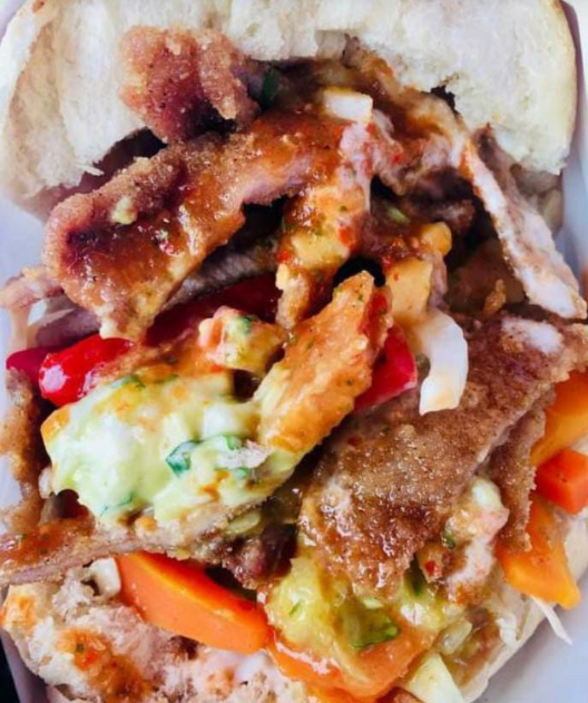 Milanesa, lechuga, jitomate, guacamole, chile en vinagre, salsa aderezo (salsa Red Hot)