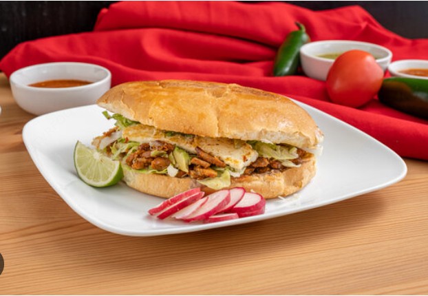 A elegir pollo o milanesa, base de frijoles, relleno de pechuga deshebrada dorada a la plancha o milanesa finamente picada acompañado de lechuga, crema y nuestra rica salsa de la casa.