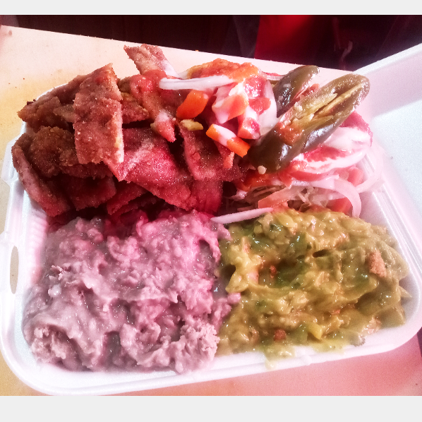 Lechuga, zanahoria, cebolla, jitomate, jalapeño ,salsa, crema , frijoles y guacamole.