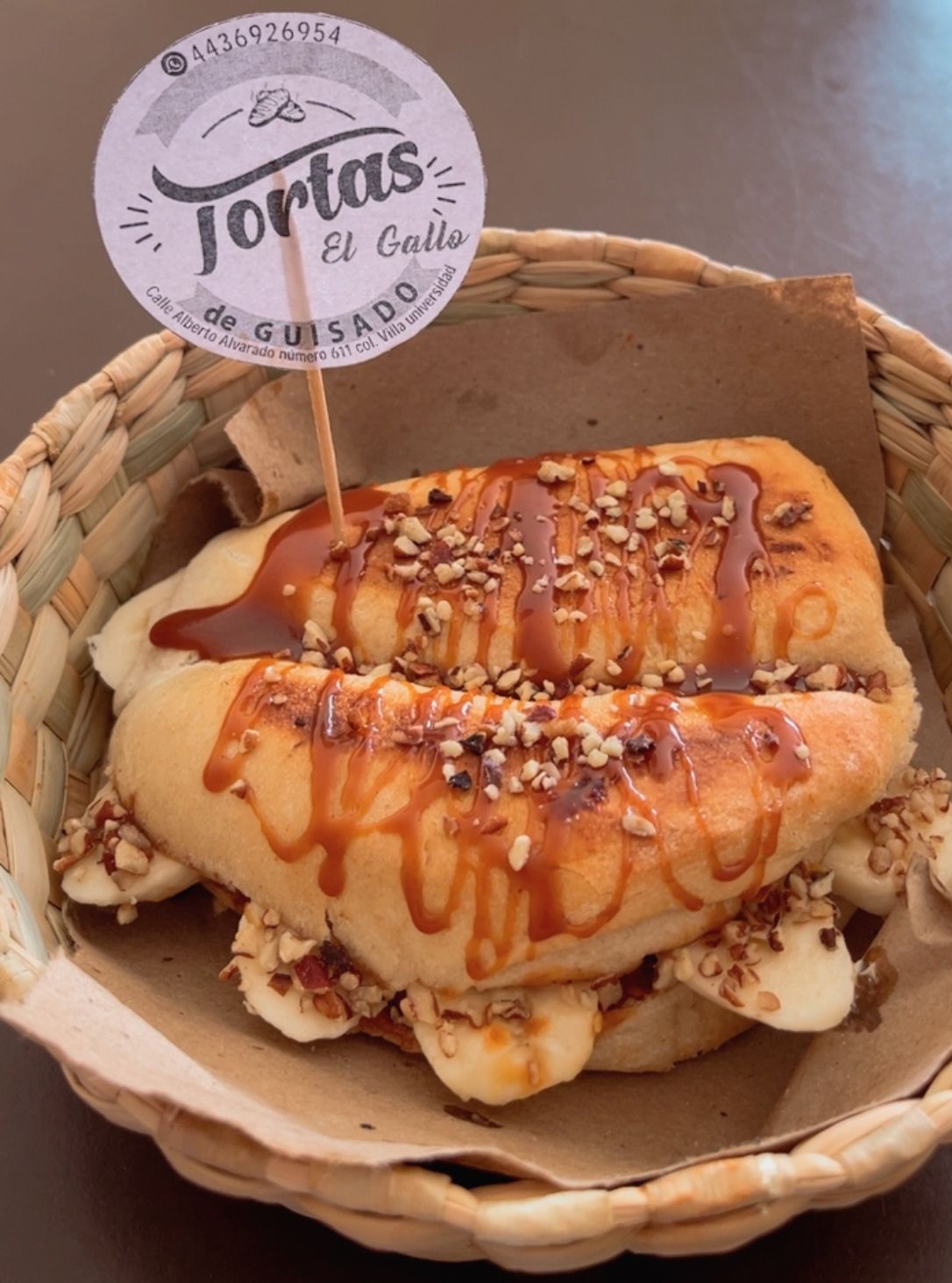 Tienes que probarla!! Deliciosa combinación. Lleva cajeta, plátano y nuez