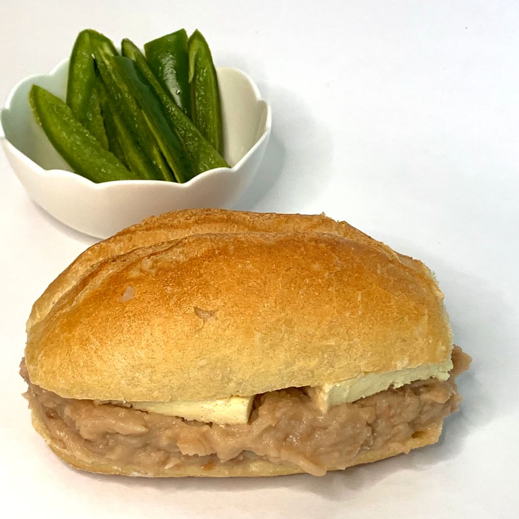 bolillo a la leña con frijoles refritos y queso