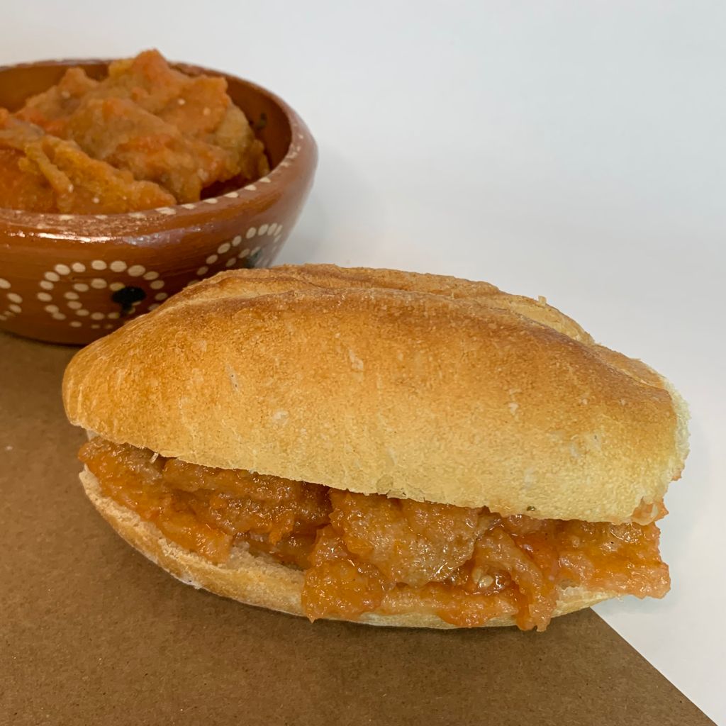 bolillo a la leña con guisado de chicharron