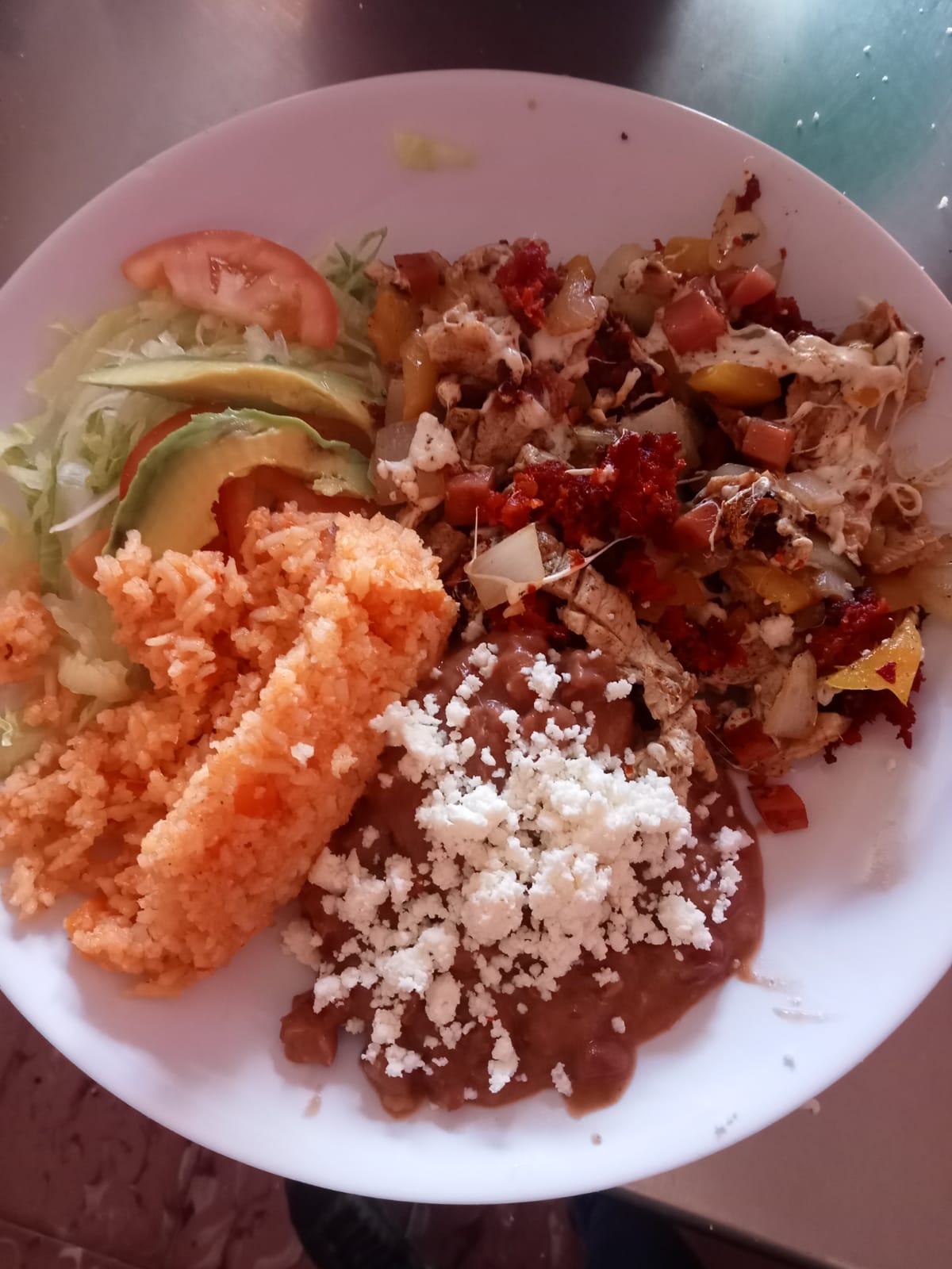 acompañados con ensalada papas a la francesa tortillas y salsa