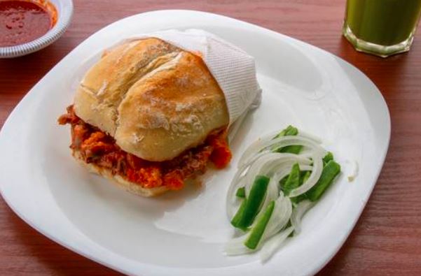1 torta personal: Mayonesa, mostaza, crema, lechuga, jitomate, zanahoria, salchicha de cerdo, chile en vinagre.