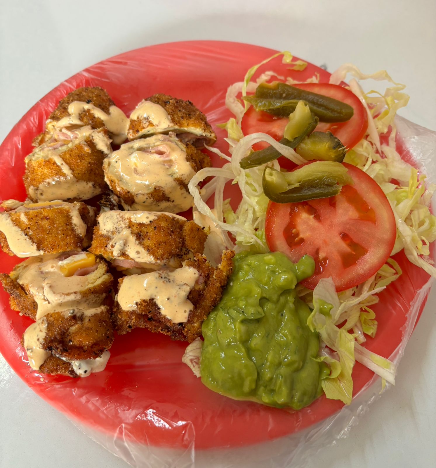 Su verdura lechuga, jitomate, guacamole, jalapeño, mayonesa y una exquisita pero picosa salsa de la casa.
