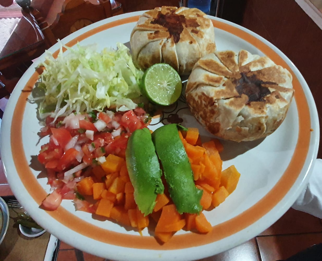 Plato Personal chica / Jamón,Mostaza,lechuga,zanahoria,tomate,cebolla,chile,aguacate,crema